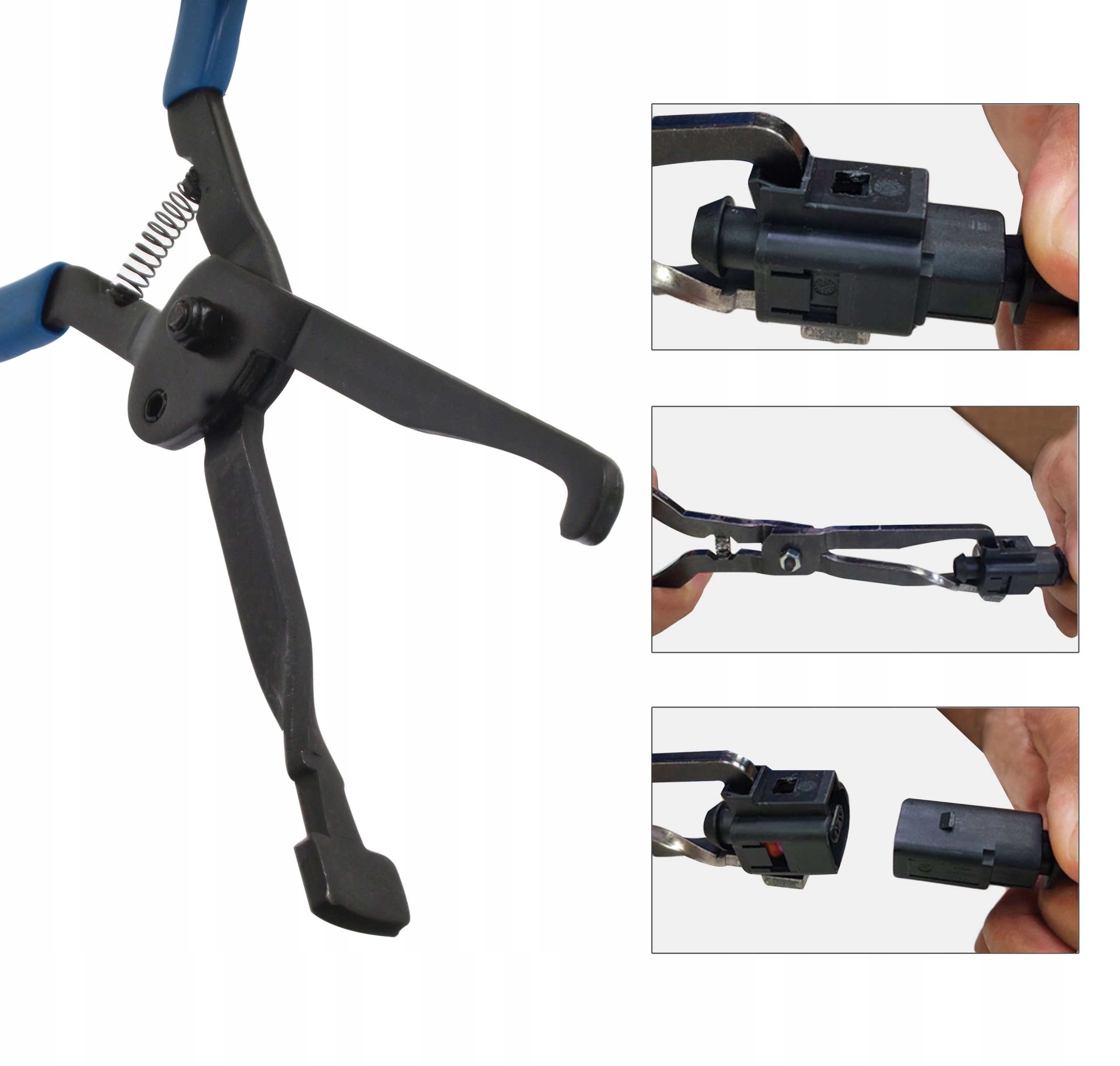 Specjalistyczne szczypce ASTA przystosowane do rozłączania kostek połączeniowych przewodów elektrycznych znajdujących się m.in. w czujnikach przepływomierza, wtryskiwaczach paliwa, cewkach zapłonowych i wszędzie tam, gdzie znajdują się kostki elektryczne.