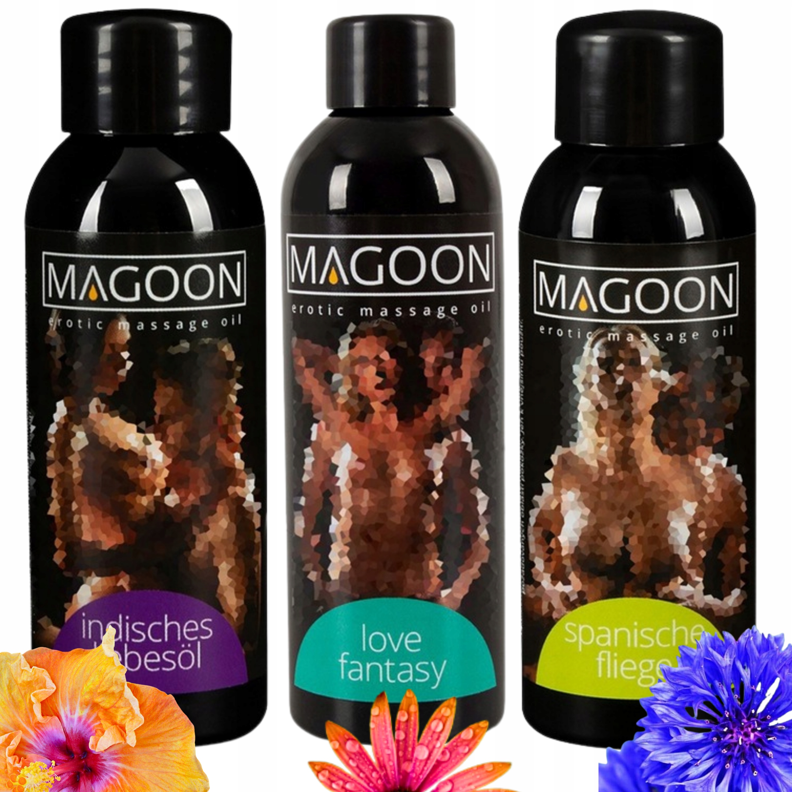 Zestaw 3 olejków do masażu Magoon – Indisches Liebesöl, Love Fantasy, Spanische Fliege
