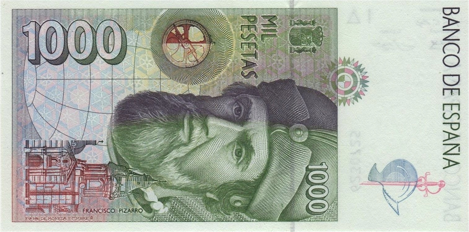 Przepiekny banknot 1000 Pesetas z Hiszpania - 1992r. (P-163) w absolutnie doskonalym stanie bankowym I (UNC).