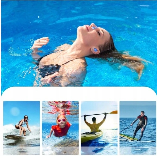 4. Trójwarstwowa wodoodporna konstrukcja: Specjalnie zaprojektowana do aktywności wodnych, trójwarstwowa wodoodporna struktura skutecznie zapobiega przedostawaniu się wody do kanału słuchowego, jednocześnie redukując hałas otoczenia, zapewniając doskonałe wrażenia słuchowe.