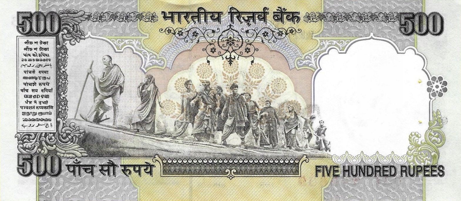 Przepiekny banknot 500 Rupees z India - 1996r. (P-92d) w absolutnie doskonalym stanie bankowym I (UNC).