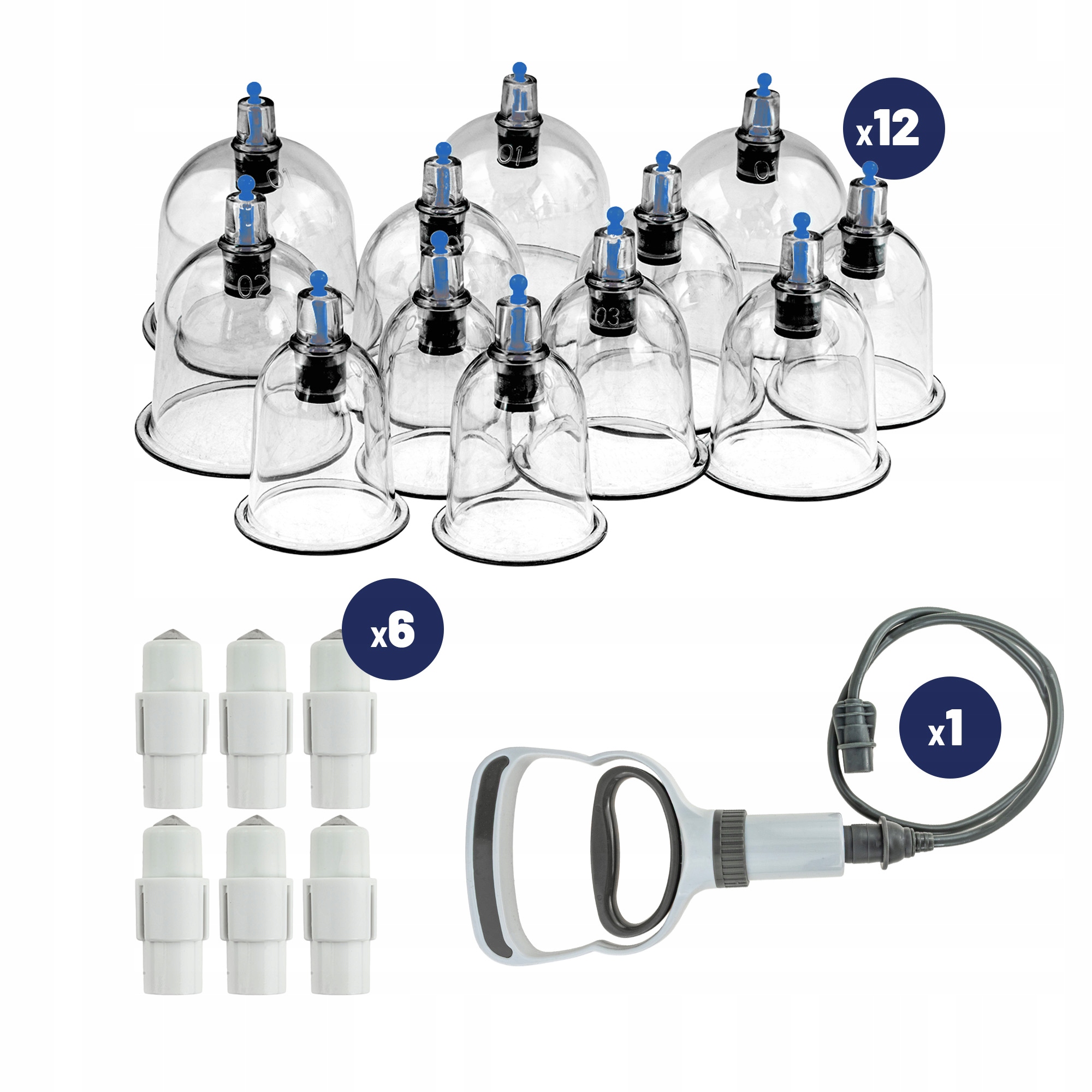 Zestaw zawiera 12 baniek w różnych rozmiarach, co pozwala na precyzyjne dopasowanie do konkretnej partii ciała – od szerokich mięśni pleców i ud, po mniejsze obszary jak kark, ramiona czy stawy. Dzięki temu możliwe jest ukierunkowane działanie terapeutyczne – zarówno w przypadku napięć mięśniowych, jak i obrzęków czy punktowych dolegliwości bólowych. W komplecie znajduje się również ręczna pompka, która umożliwia wygodne i kontrolowane wytwarzanie podciśnienia, bez potrzeby użycia ognia. To rozwiązanie bezpieczne, funkcjonalne i wszechstronne.