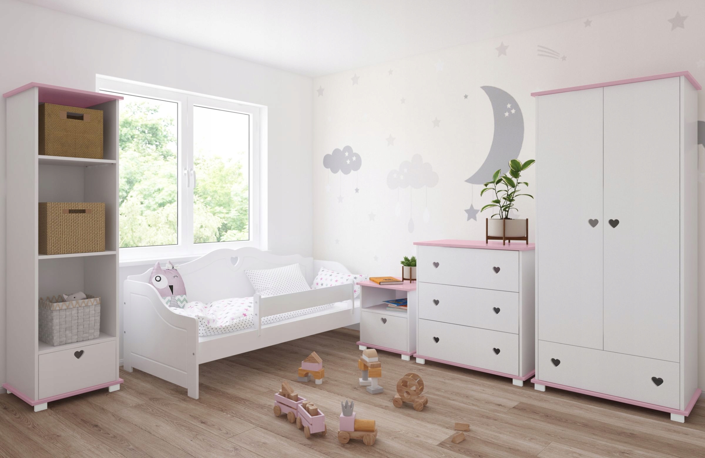 Jej prosty, skandynawski styl z romantycznym akcentem w postaci serduszek tworzy ciepłą, przyjazną atmosferę – idealną dla malucha.