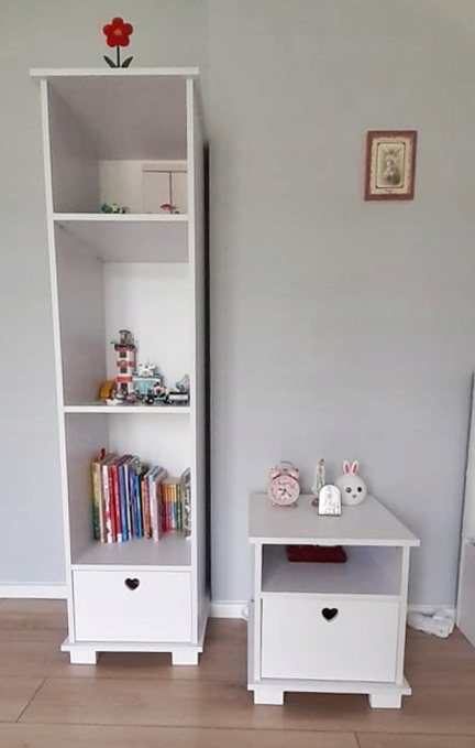 Szafka nocna SERCA została zaprojektowana z myślą o bezpieczeństwie, komforcie oraz wyjątkowym wzornictwie, idealnie wpisującym się w aranżację pokoju dziecięcego. W skład kolekcji SERCA wchodzą również pasujące stylistycznie: szafa, regał, biurko, komoda oraz łóżeczko – tworząc spójną i funkcjonalną przestrzeń dla dziecka.