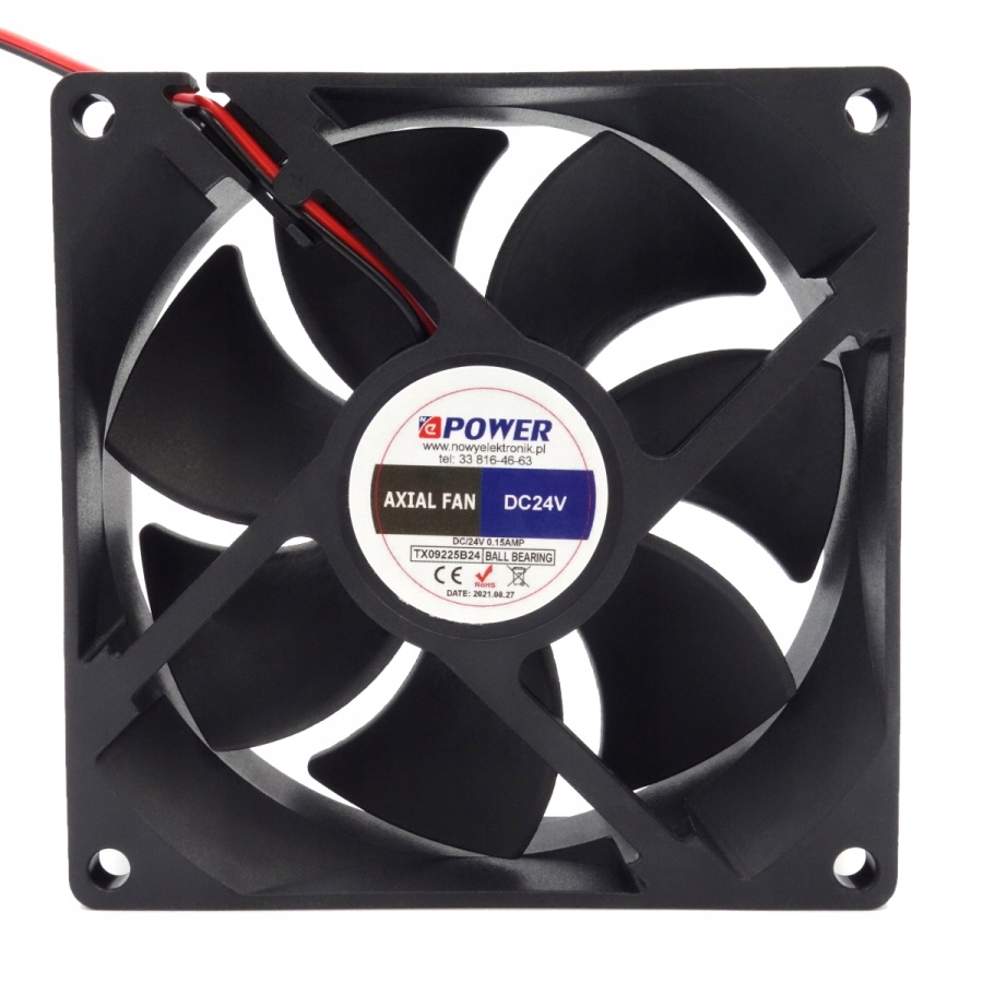 Uniwersalny wentylator TX09225B24 przeznaczony jest do instalacji w urządzeniach wymagających wymuszenia dodatkowego obiegu powietrza i wentylacji. Zasilany jest napięciem stałym 24V DC. Łożyskowanie wiatraka przy użyciu łożyska kulkowego.