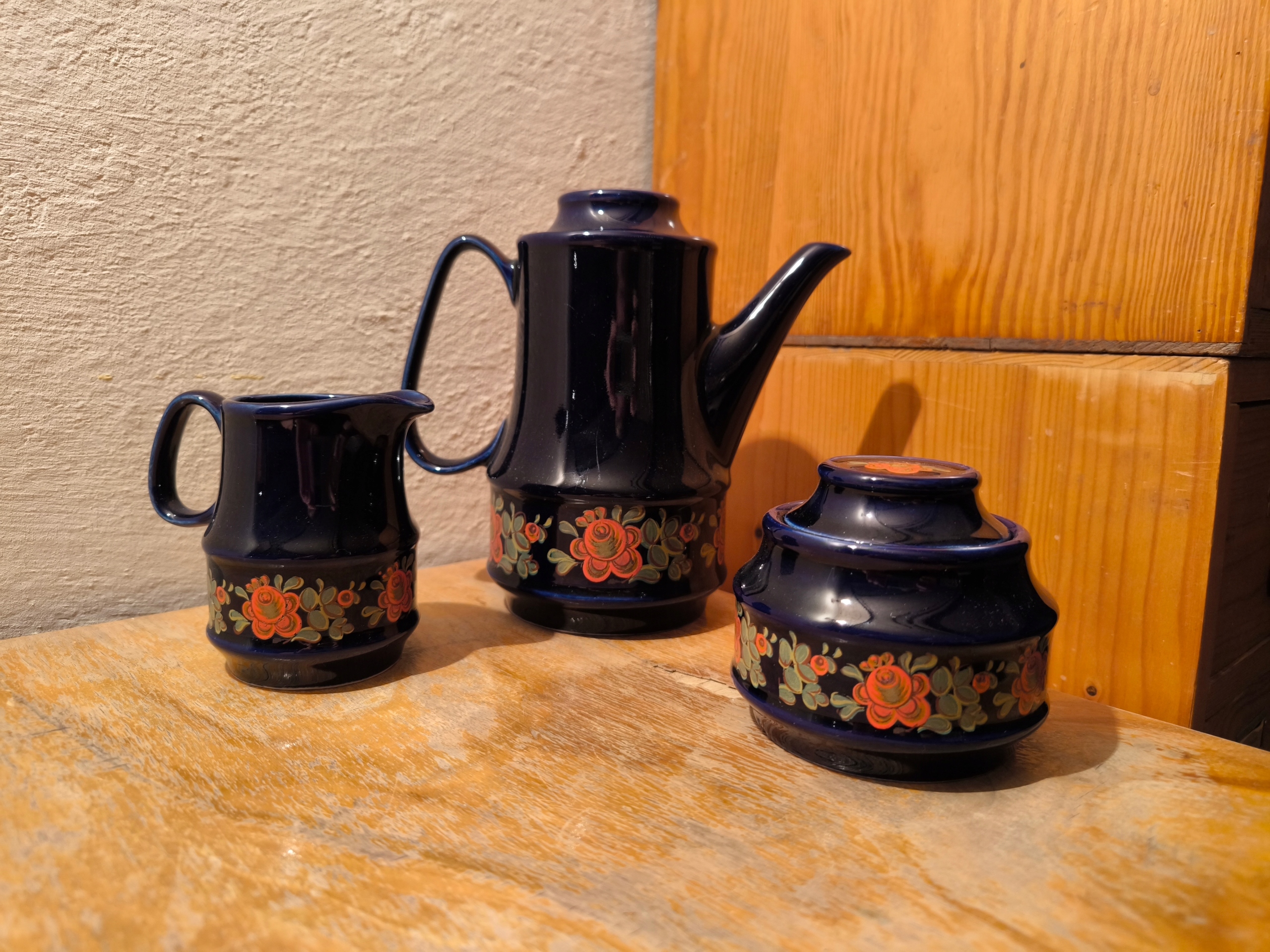 Przedmiotem sprzedaży jest kobaltowy serwis kawowy wyprodukowany przez nieistniejące już Zakłady Porcelitu Stołowego "Pruszków".