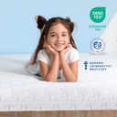 2️⃣ Pianka poliuretanowa: Pianka poliuretanowa T-25 o gęstości 25kg/m³ to trwały i solidny materiał, który zapewnia optymalne wsparcie i odpowiedni poziom twardości. Dzięki starannie dobranej gęstości materac zachowuje swój pierwotny kształt przez długi czas – nawet gdy dziecko rośnie i staje się cięższe.