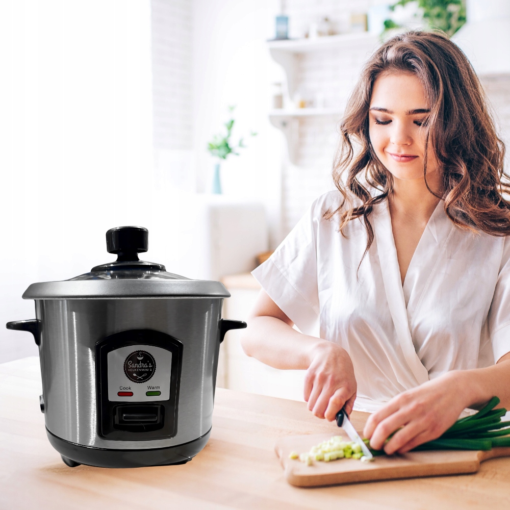 Mini garnek do gotowania ryżu z lampkami kontrolnymi i nieprzywierającą powłoką.