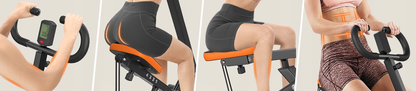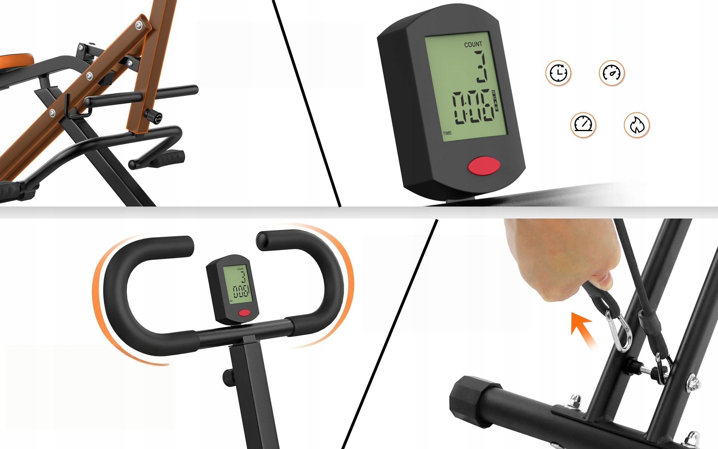 wysoko elastyczna poduszka z miękkiej pianki nie jest zmęczona siedzeniem przez długi czas, opływowy antypoślizgowy uchwyt dopasowany do dłoni; wbudowany ekran LCD śledzenie w czasie rzeczywistym czasu, czasów, kalorii i kroków, dane ćwiczeń na pierwszy rzut oka (trzeba dostarczyć własne baterie), aby pomóc Ci dokładnie kontrolować postępy.