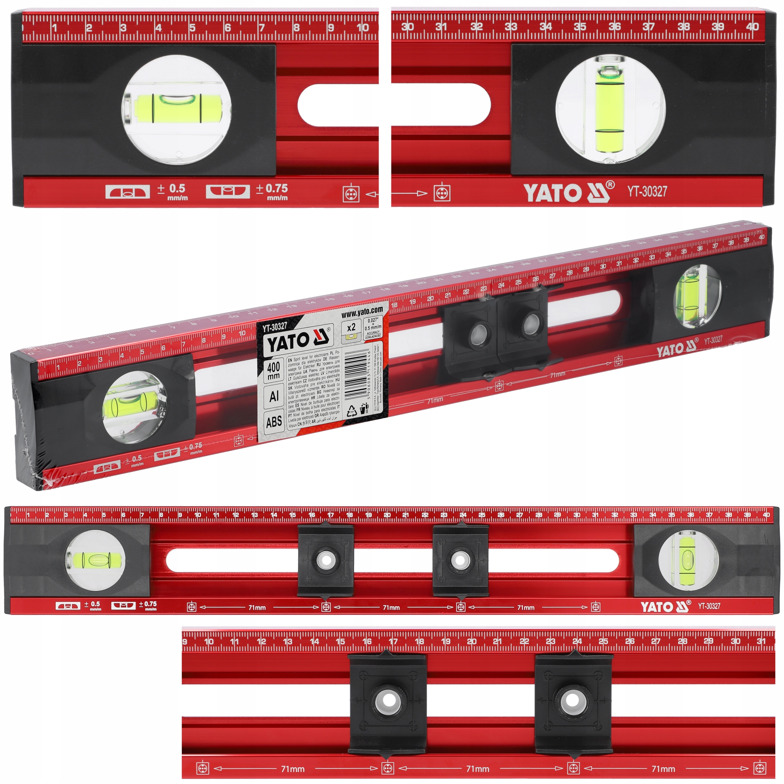 Poziomnica 40cm dla elektryków YATO pozwalająca na szybki i precyzyjny pomiar, wyrównywanie i znakowanie.