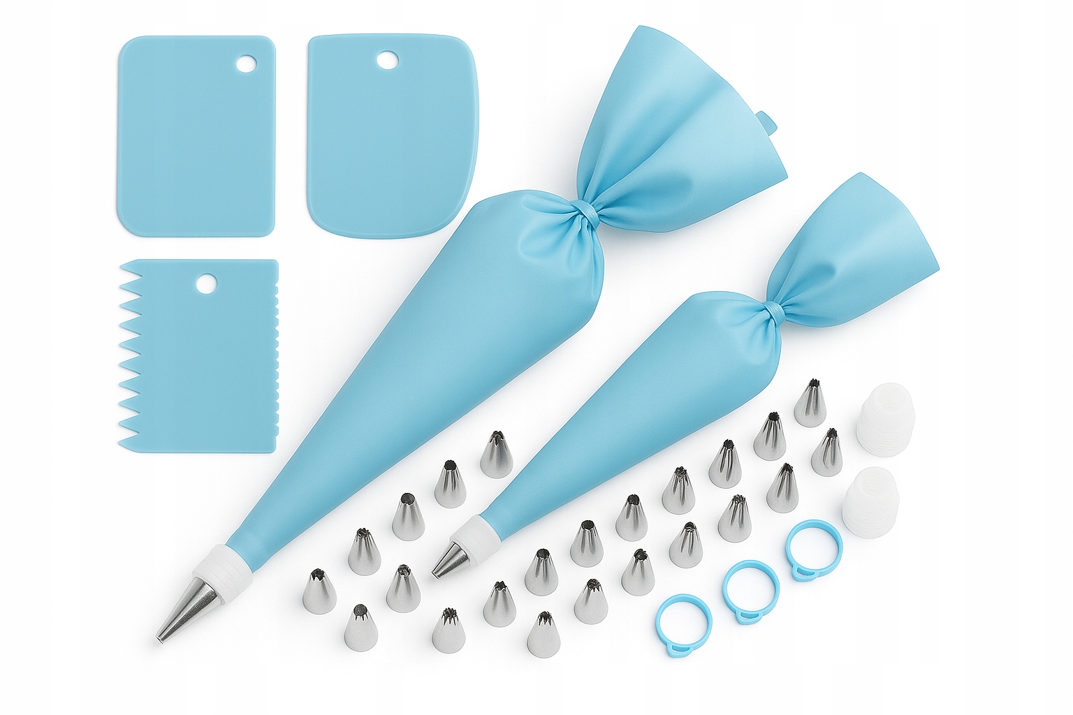 Zestaw do dekorowania ciast, babeczek, tortów i deserów. Zestaw świetnie sprawdzi się dla amatorów oraz zawodowych cukierników!