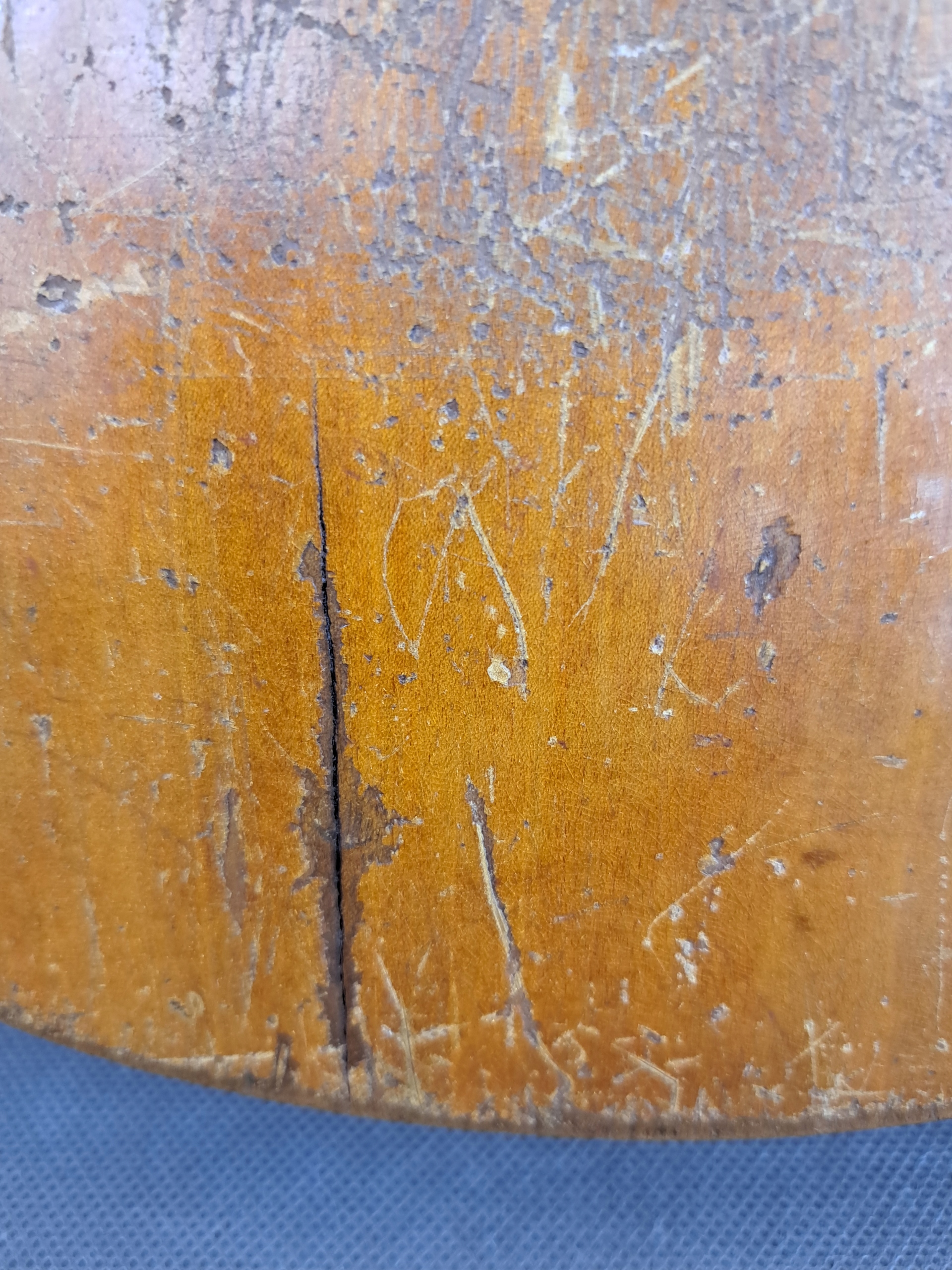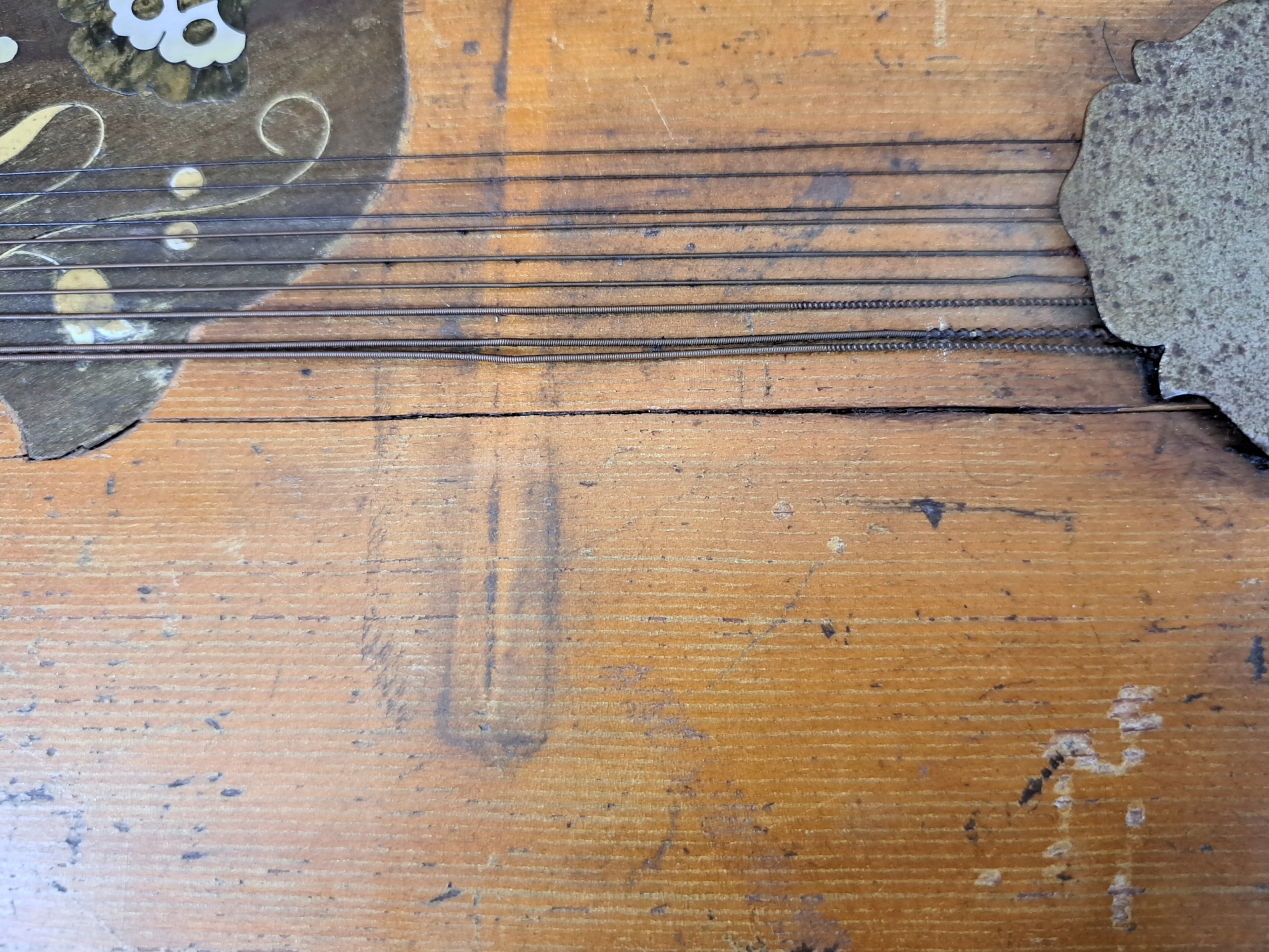 Instrument wymaga renowacji. Występują rozszczelnienia, przetarcia, zarysowania, zabrudzenia, wygięcie przy otworze rezonansowym.