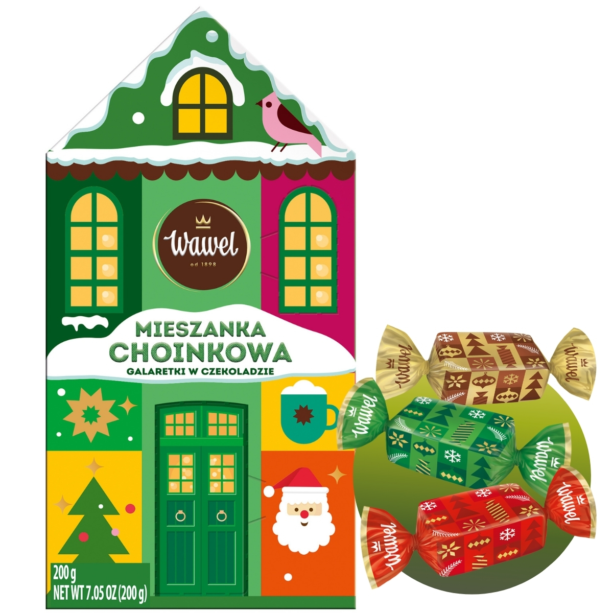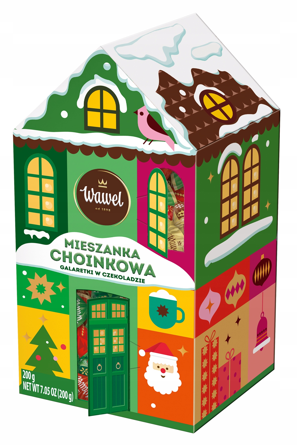 Wprowadź do swojego domu prawdziwie świąteczny nastrój z Mieszanką Choinkową od Wawel - zestawem kolorowych galaretek w czekoladzie, które zachwycą każdego - od dzieci po dorosłych. Umieszczone w uroczym opakowaniu w kształcie domku, te pyszne cukierki stanowią nie tylko wyśmienity smakołyk, ale też piękną ozdobę bożonarodzeniową.