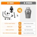 Wraz z przyspieszeniem współczesnego tempa życia, sprzątanie kuchni stało się poważnym wyzwaniem w codziennym życiu wielu ludzi. Maszyna do usuwania śmieci spożywczych ma komorę mielenia 42.23 uncji o mocy 560 W (1/2 KM) o dużej mocy, która z łatwością poradzi sobie z różnymi resztkami jedzenia i zmniejszy ryzyko zablokowania. Wybór go nie tylko wnosi do Twojej kuchni efektywne i wygodne wyrzucanie śmieci, ale także sprawia, że każde spotkanie staje się łatwiejsze i przyjemniejsze, co czyni go idealnym wyborem do poprawy jakości życia.