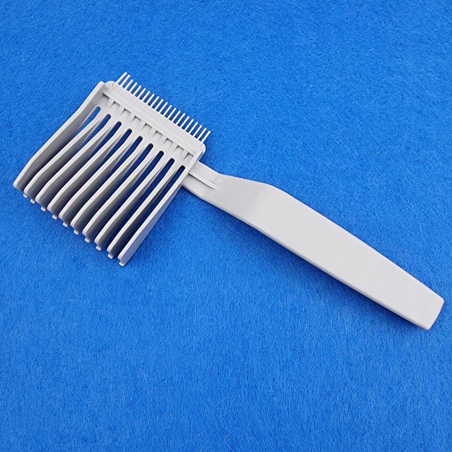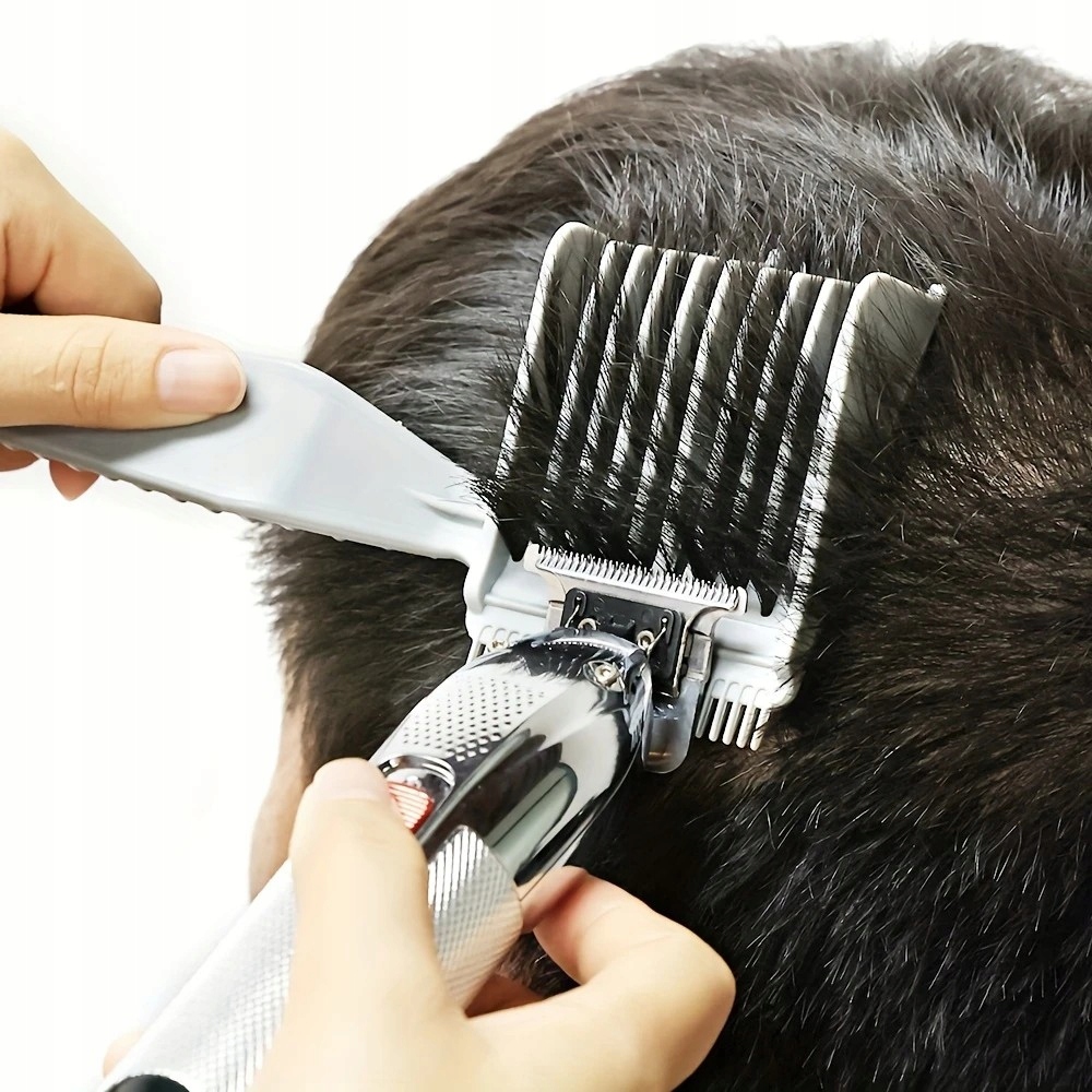 Ten specjalistyczny grzebień został zaprojektowany z myślą o łatwym i równomiernym prowadzeniu maszynki po powierzchni głowy