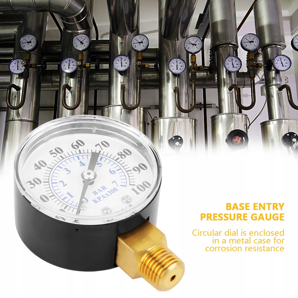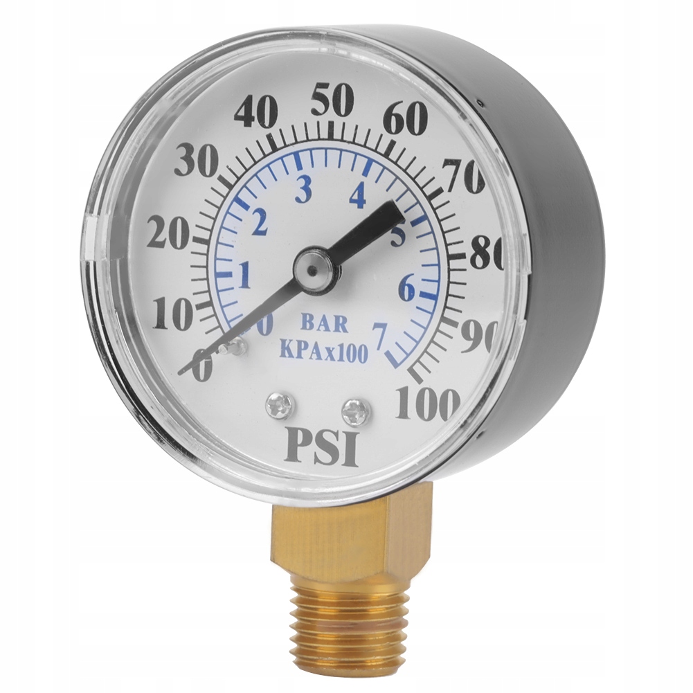 4. Z poączeniem gwintu 1/4 cala jego zakres pomiaru wynosi 0-100 PSI / 0-7