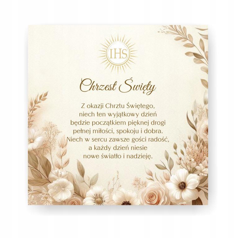 Na froncie pudełka znajduje się beżowa naklejka z napisem "Chrzest Święty"