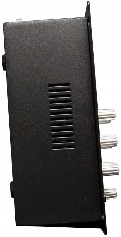 mikser dla DJ-ów, 2 kanały, dwa odtwarzacze MP3 i WAV z wejściami USB, SD i Bluetooth, 20 diod LED VU, wymiary 264 x 85 x 200 mm, waga 2.4 kg