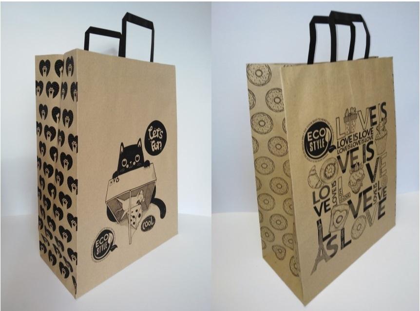 Papierowa torebka ekologiczna, wykonana w 100% z papieru z recyklingu. Wyprodukowana na Ukrainie.