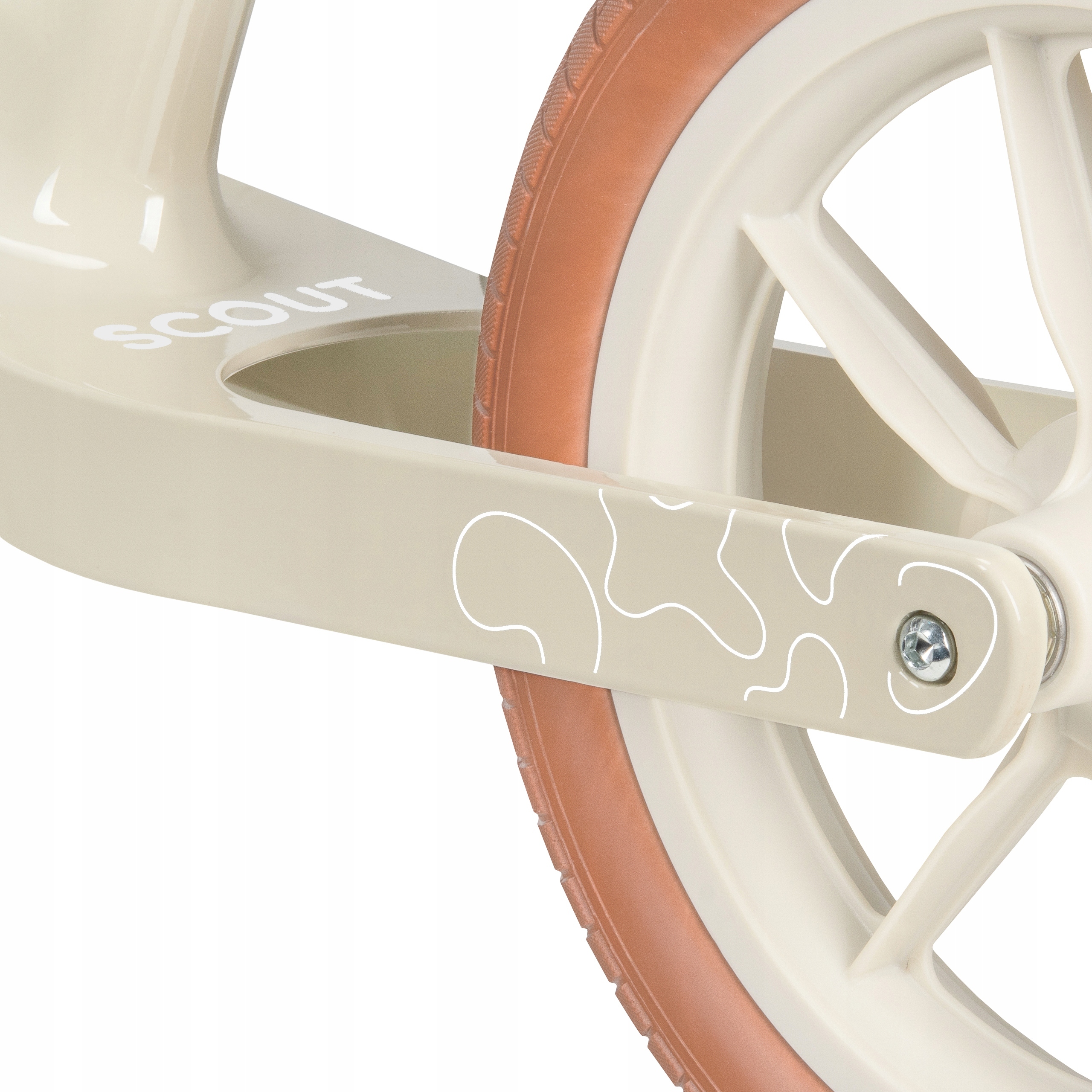 Stylowy rowerek SCOUT w eleganckiej kolorystyce beżu i brązu – modny dodatek dla małych odkrywców.