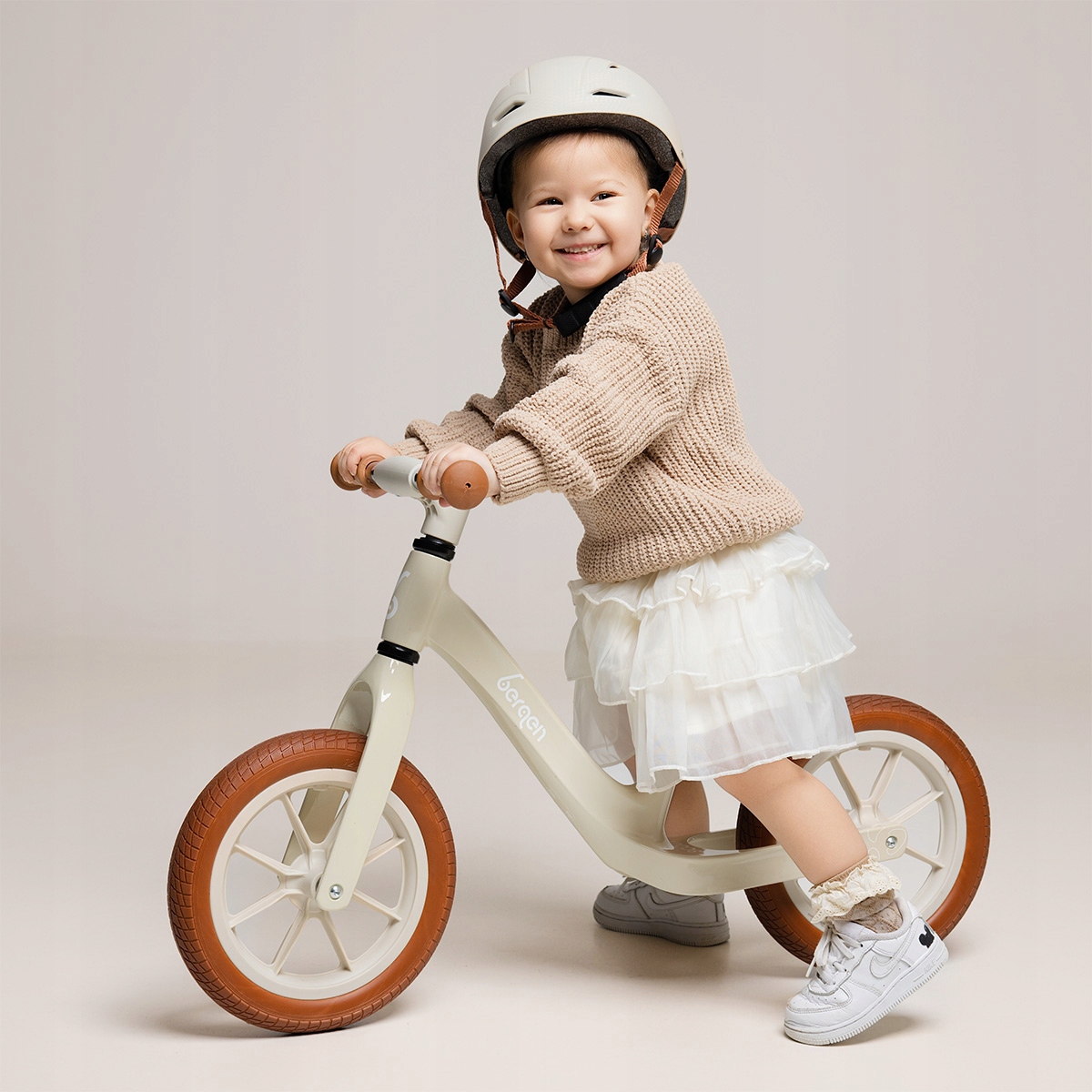 Ta oferta dotyczy 1 sztuki rowerka w kolorze beżowo-brązowym