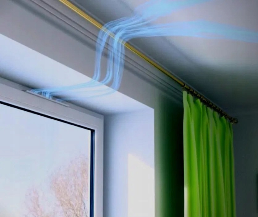 Położenie nawiewnika nie powoduje konieczności demontażu lub przesunięcia wewnętrznych rolet okiennych.