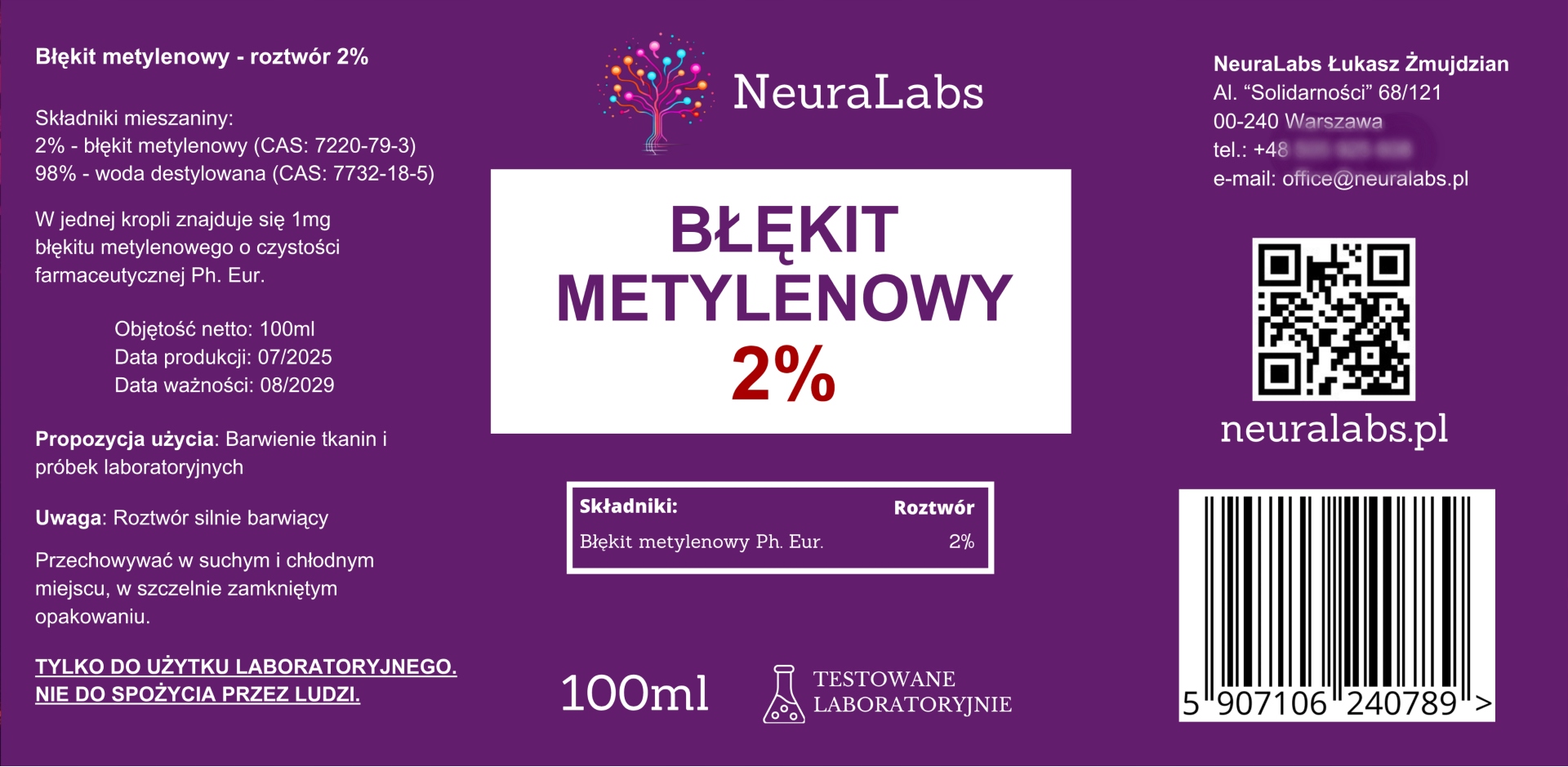 W jednej kropli znajduje się 1 mg błękitu metylenowego o jakości farmaceutycznej Ph. Eur., czyli najwyższej możliwej.