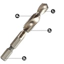 Резьбонарезные сверла изготовлены из прочной и прочной стали HSS. Благодаря этому решению мы можем без проблем сверлить в такие материалы, как: мягкие металлы, алюминиевый лист, пластик, медь, сталь, дерево и т. д.