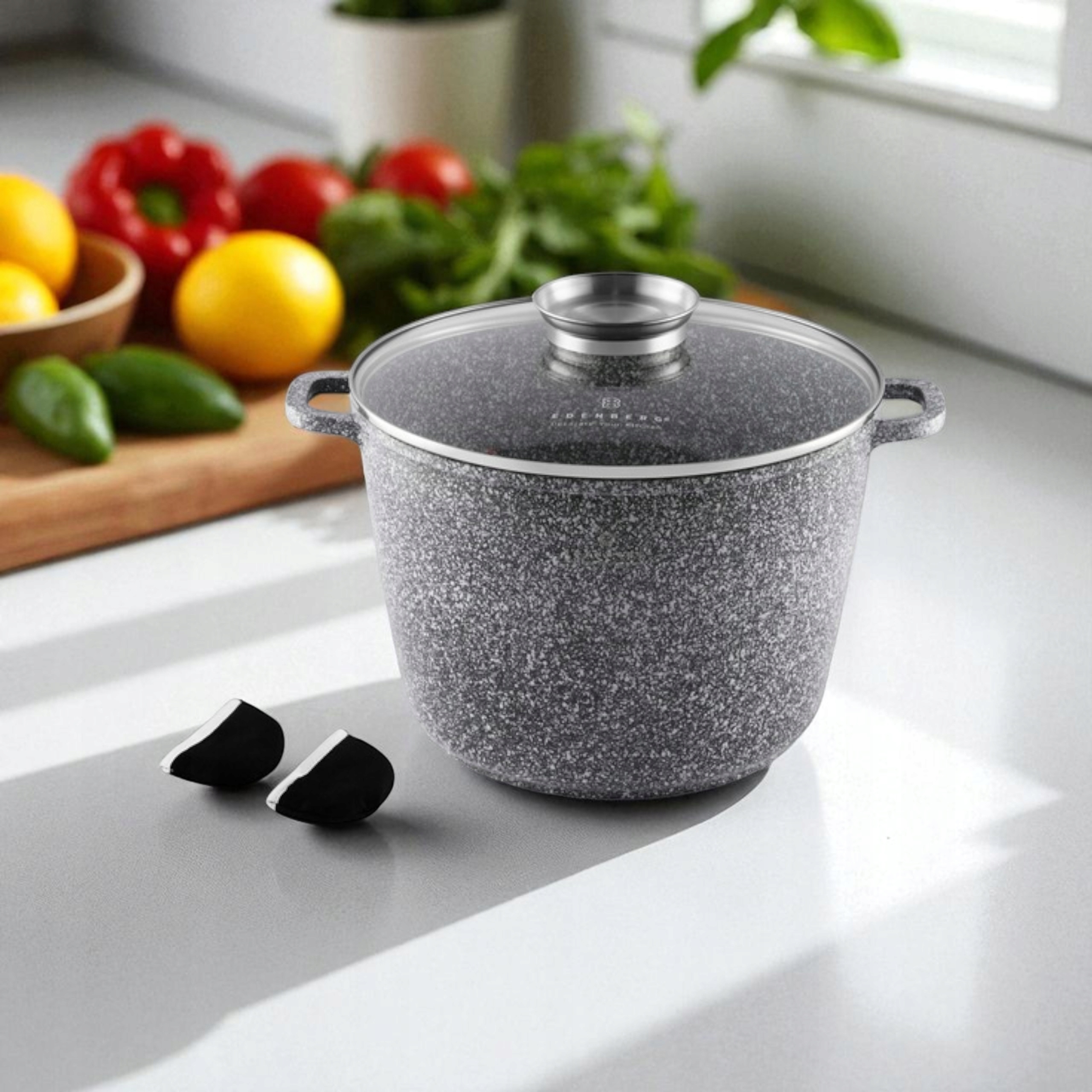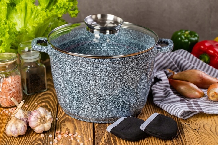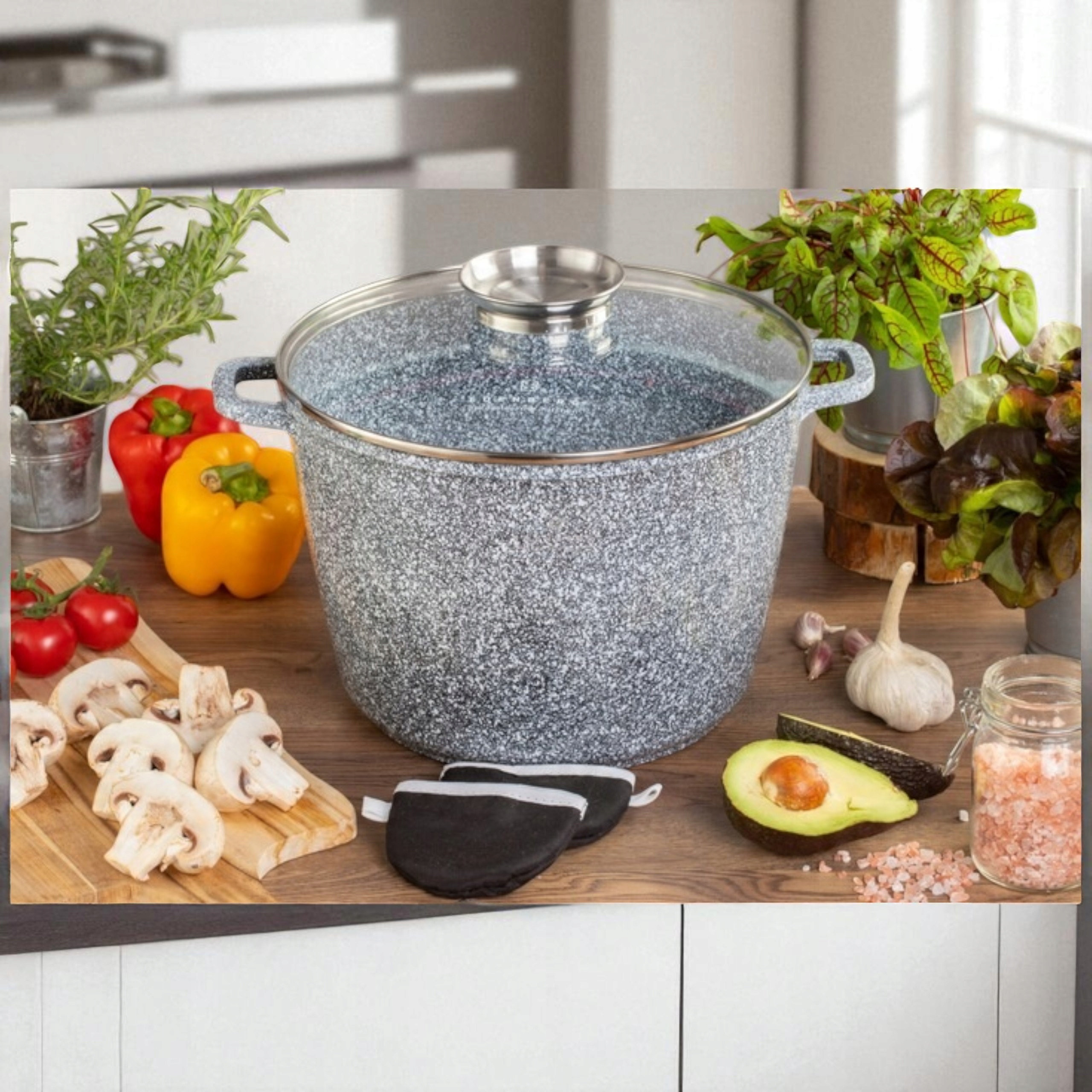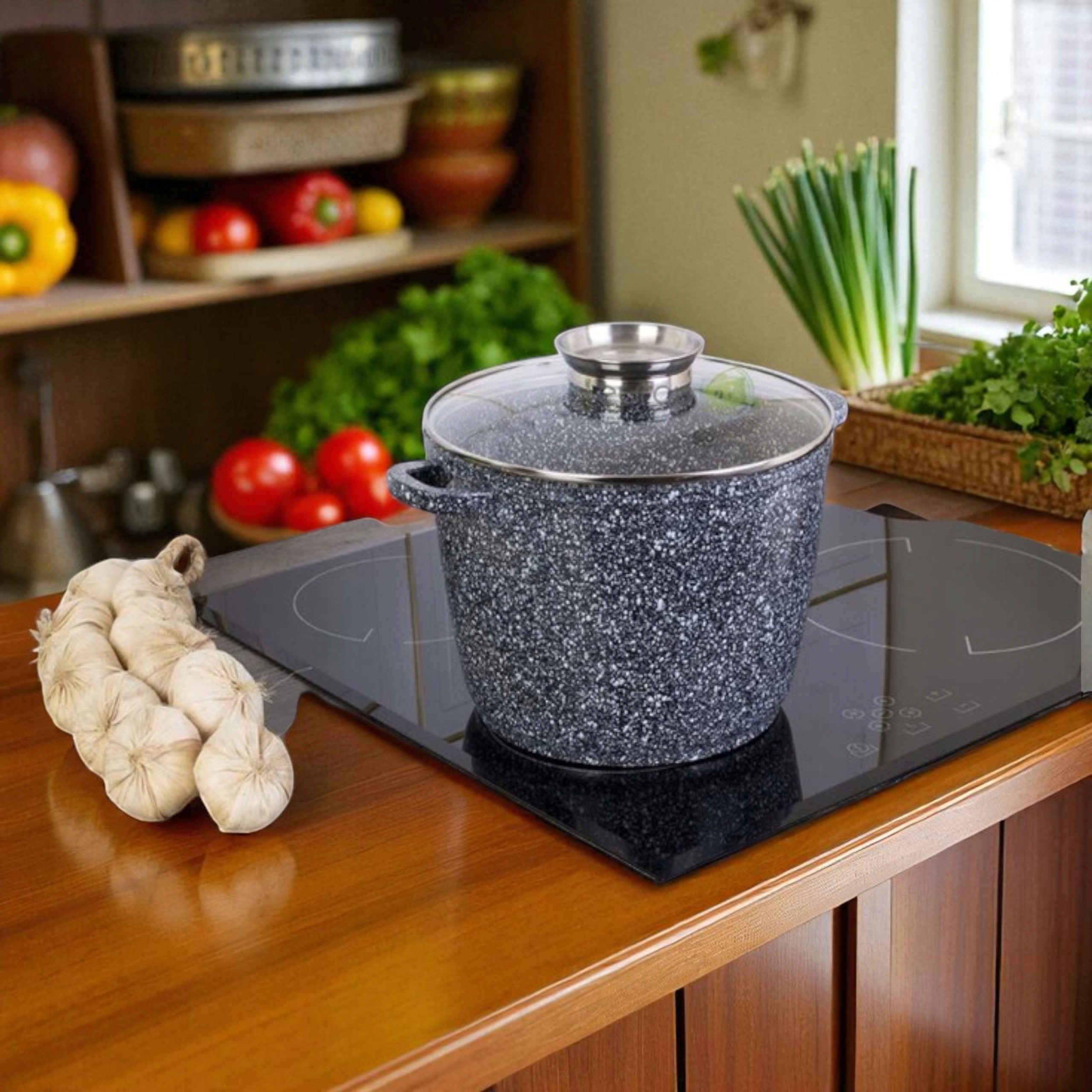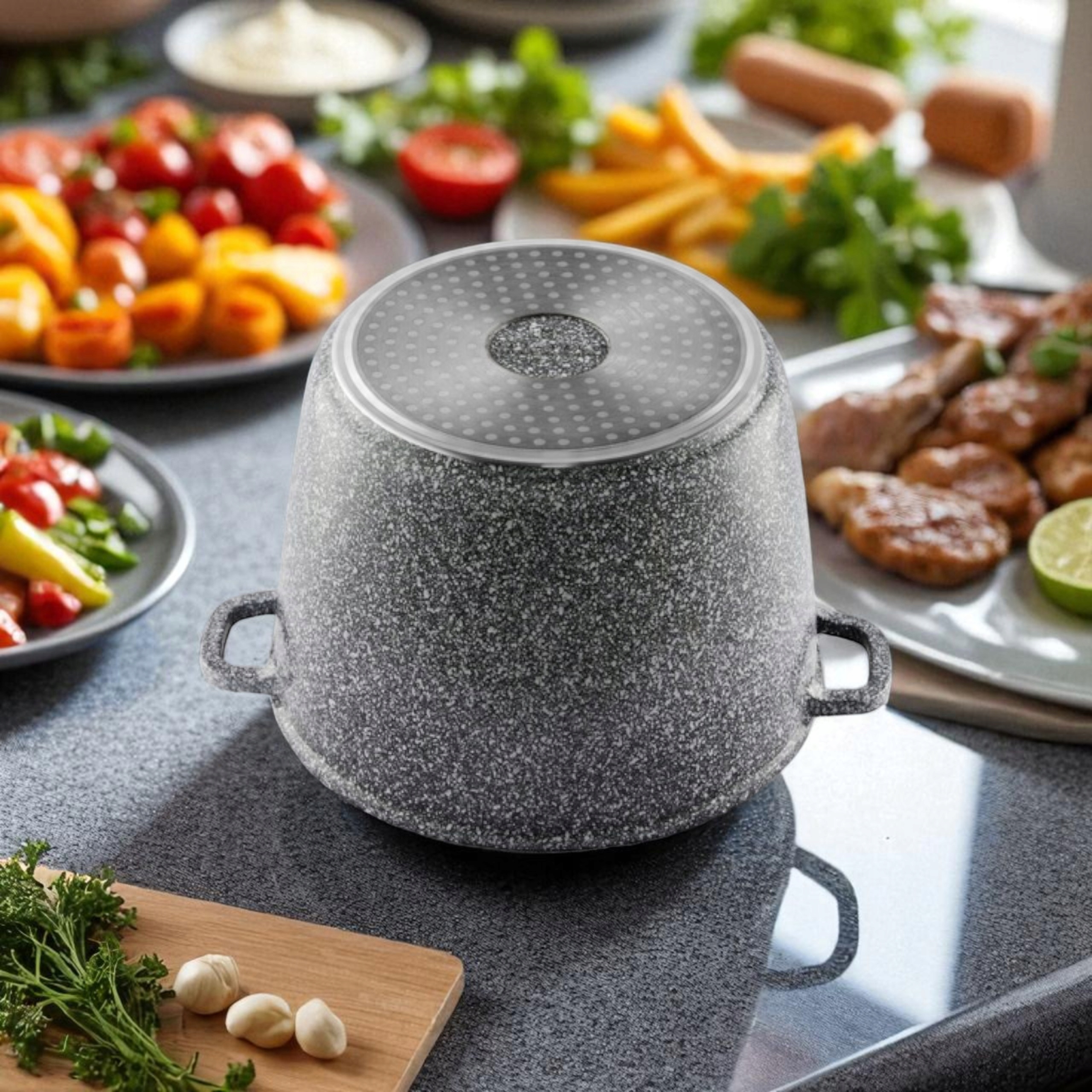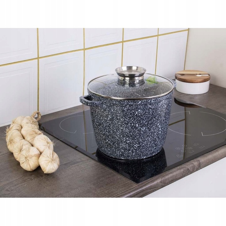 ➡️Dzięki eleganckiemu marmurkowemu wykończeniu, garnek ten nie tylko doskonale spełnia swoje funkcje, ale również prezentuje się stylowo na każdej kuchennej półce.