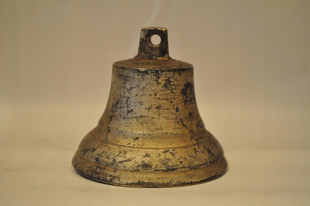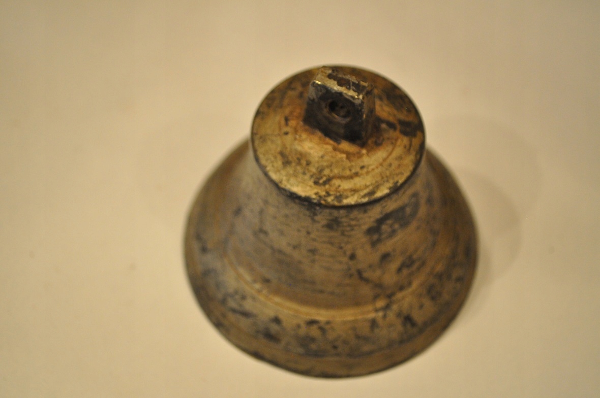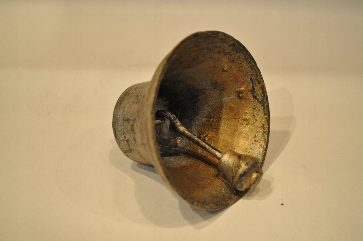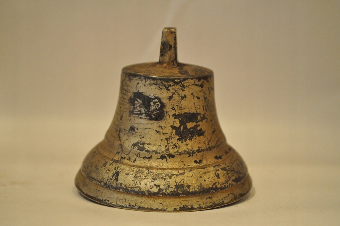 Dzwonek pomalowany srebrzanką - rozległe ubytki powłoki.