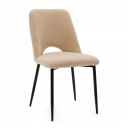 Krzesło ORO nie tylko wzbogaci Twoje wnętrze, ale także sprawi, że każda chwila spędzona przy rodzinnym stole, stanie się o wiele bardziej komfortowa i przyjemna. Miękkie siedzisko i oparcie jest obite modną tkaniną typu boucle, a całość stylowo dopełniają solidne, czarne nóżki malowane proszkowo.
