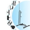 Połóż element 2 (podstawa z dwoma rurami pionowymi) na płaskiej powierzchni. Następnie włóż element 1 (długi pionowy pręt z haczykiem) w gniazdo znajdujące się na szczycie elementu 3, tak aby wszedł pewnie i stabilnie, do stabilizacji użyj dedykowanej śruby motylkowej.