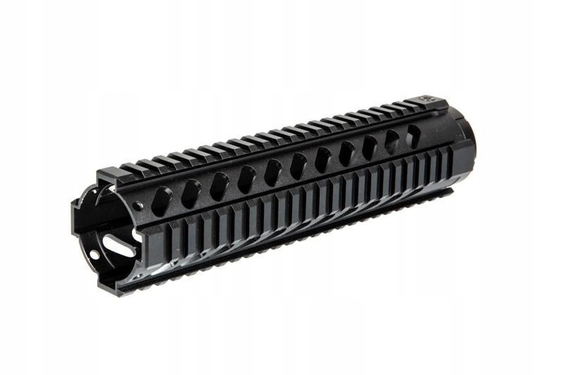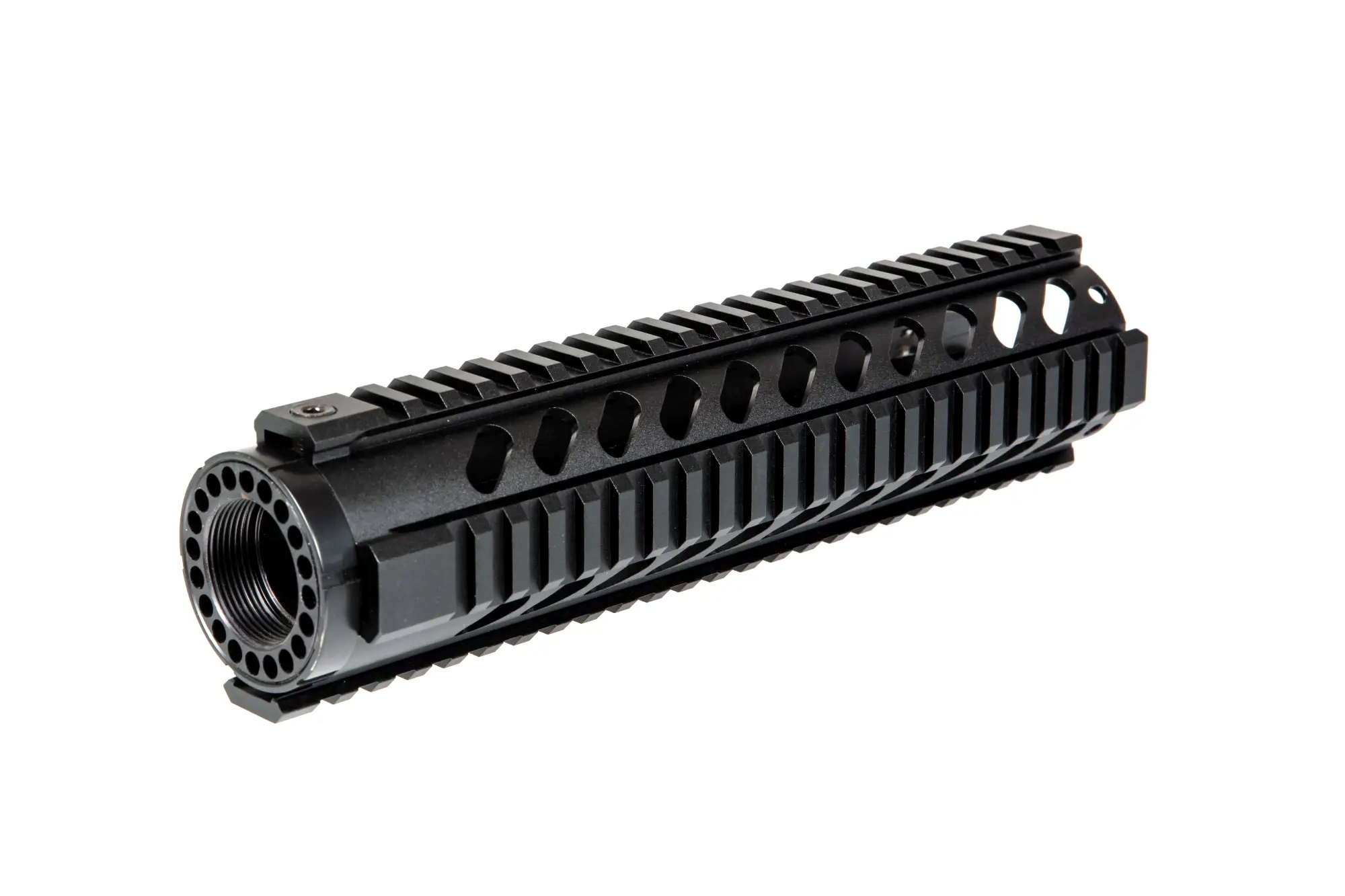 Frontowa szyna montażowa RIS 22 mm 10" od marki Specna Arms. Produkt ma długość 260 mm i został wykonany z aluminium obrabianego na precyzyjnych maszynach CNC. Szyna dedykowana jest do mocowania w replikach typu M4/M16.