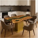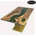 ➡️ Żywica epoksydowa w oliwkowym odcieniu – nadaje meblowi głębi i nowoczesnego charakteru, tworząc kontrast z naturalnym rysunkiem drewna.