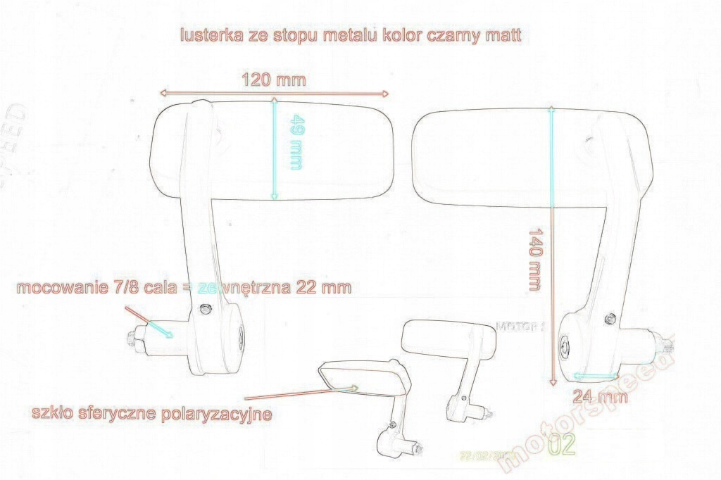 LUSTERKA MOŻNA MONTOWAĆ W MOTOCYKLACH, KTÓRYCH KIEROWNICA MA ŚREDNICĘ ZEWNĘTRZNĄ 22 mm
