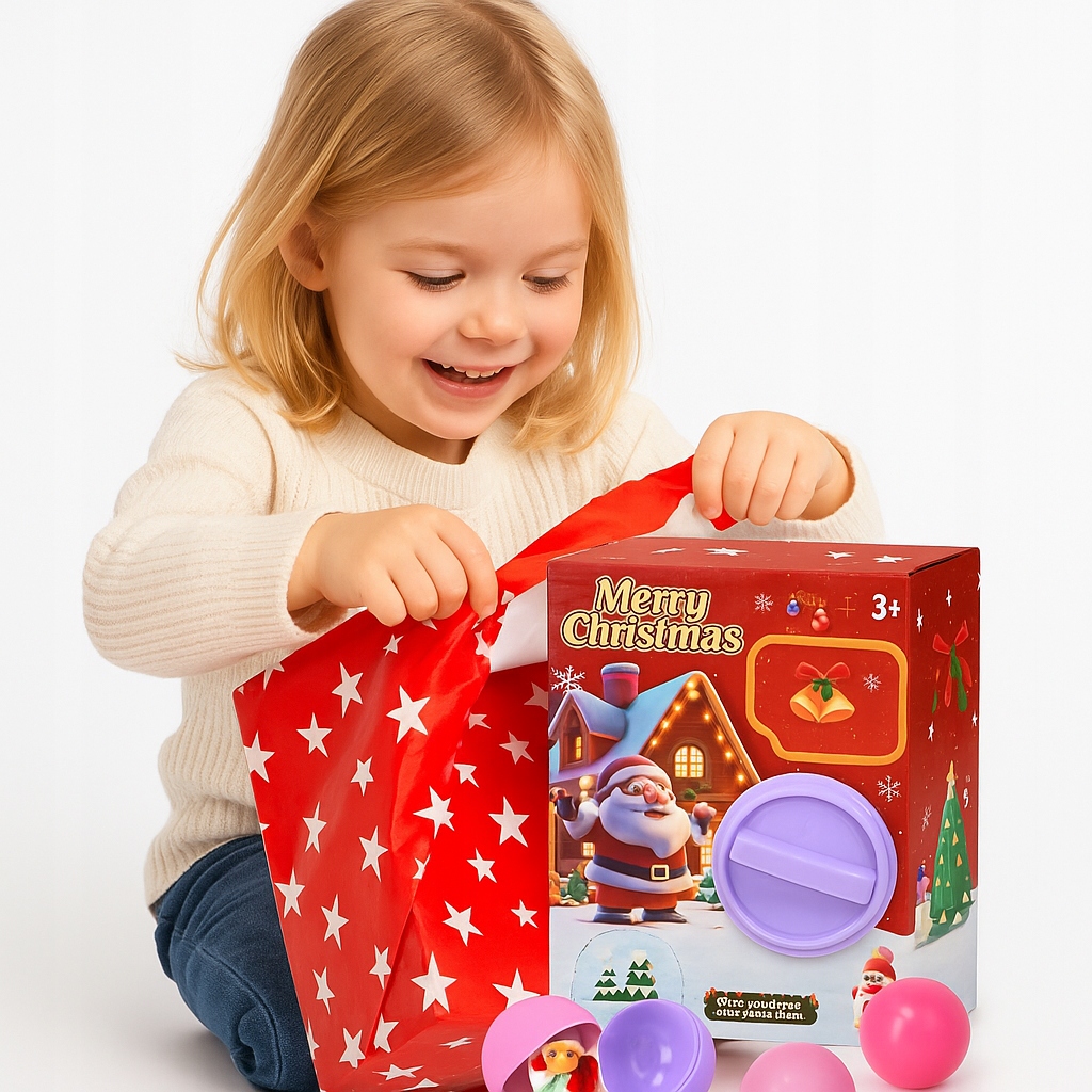 To nie jest zwykłe pudełko – to magiczna świąteczna maszyna z niespodziankami, która przeniesie malucha w zimową krainę zabawy i radości!