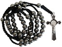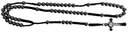 Różaniec wykonany jest na sznurku o mocnym splocie, krzyż natomiast jest metalowy z wypełnieniem z czarnej laki.