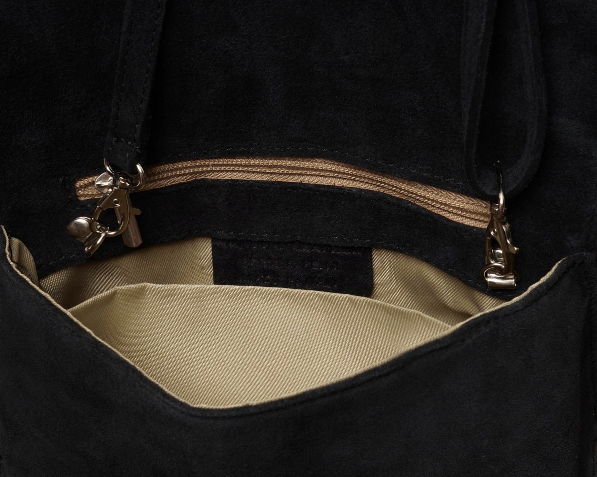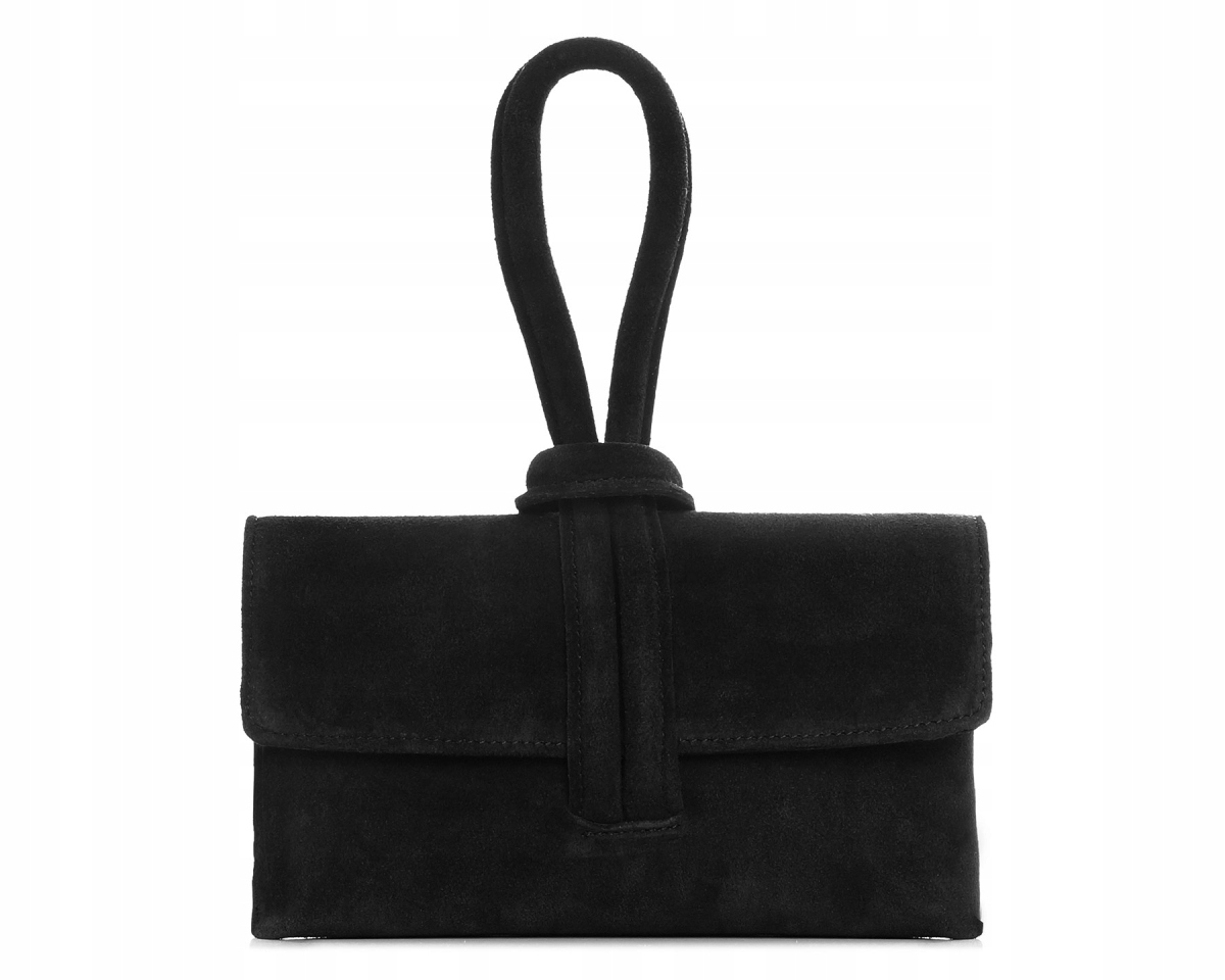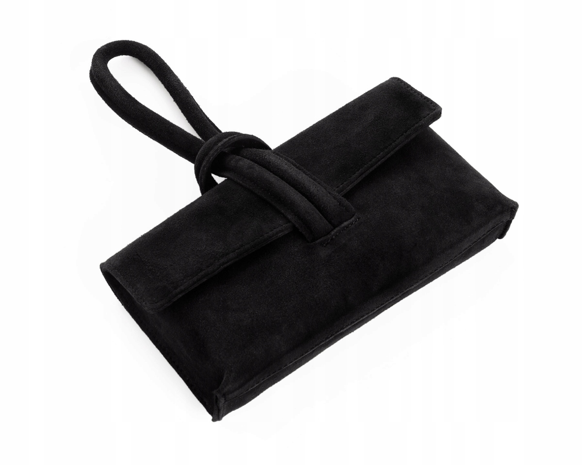 Skórzana kopertówka SOLOME FLORA – czarna zamszowa