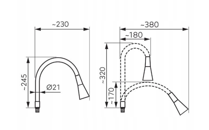 • zmienny zasięg wylewki od 180-380 mm