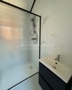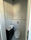 � Nowoczesna łazienka wykończona panelem winylowym z pełnym wyposażeniem, w tym prysznic typu walk-in — gotowa do codziennego użytku. WC w osobnym pomieszczeniu
