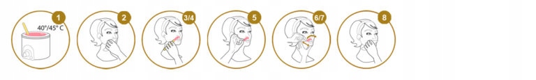 5. Wosk stwardnieje w ciągu 5-6 sekund (przy dotykaniu, gotowy do usunięcia wosk nie powinien przyklejać się do dłoni);