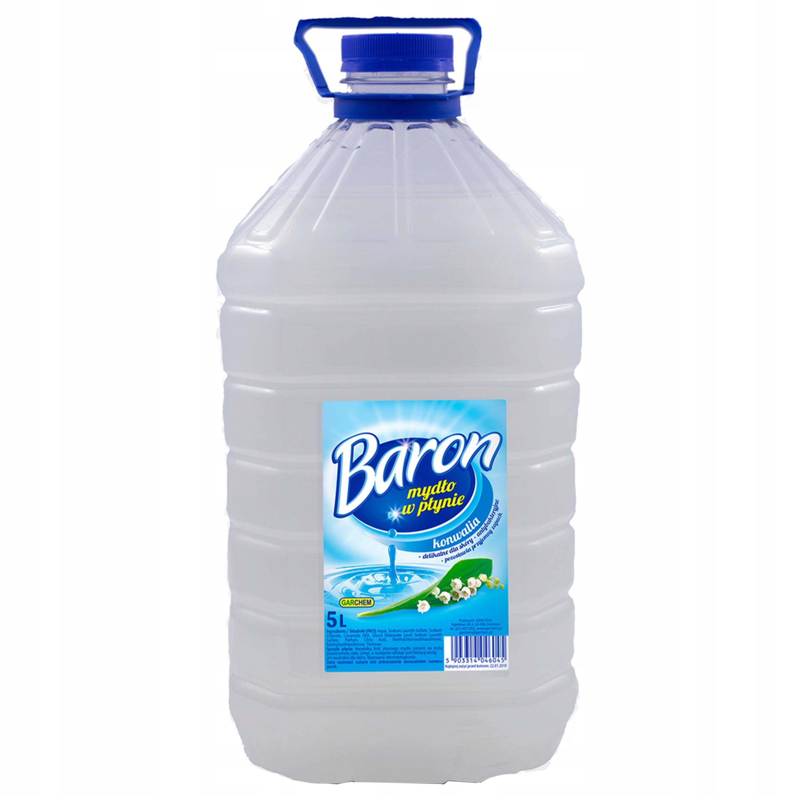 Łagodne mydło w płynie Baron idealnie nadaje się do codziennego mycia rąk i całego ciała. Usuwa bakterie i nie wysusza skóry, pozostawiając przyjemny zapach konwalii.