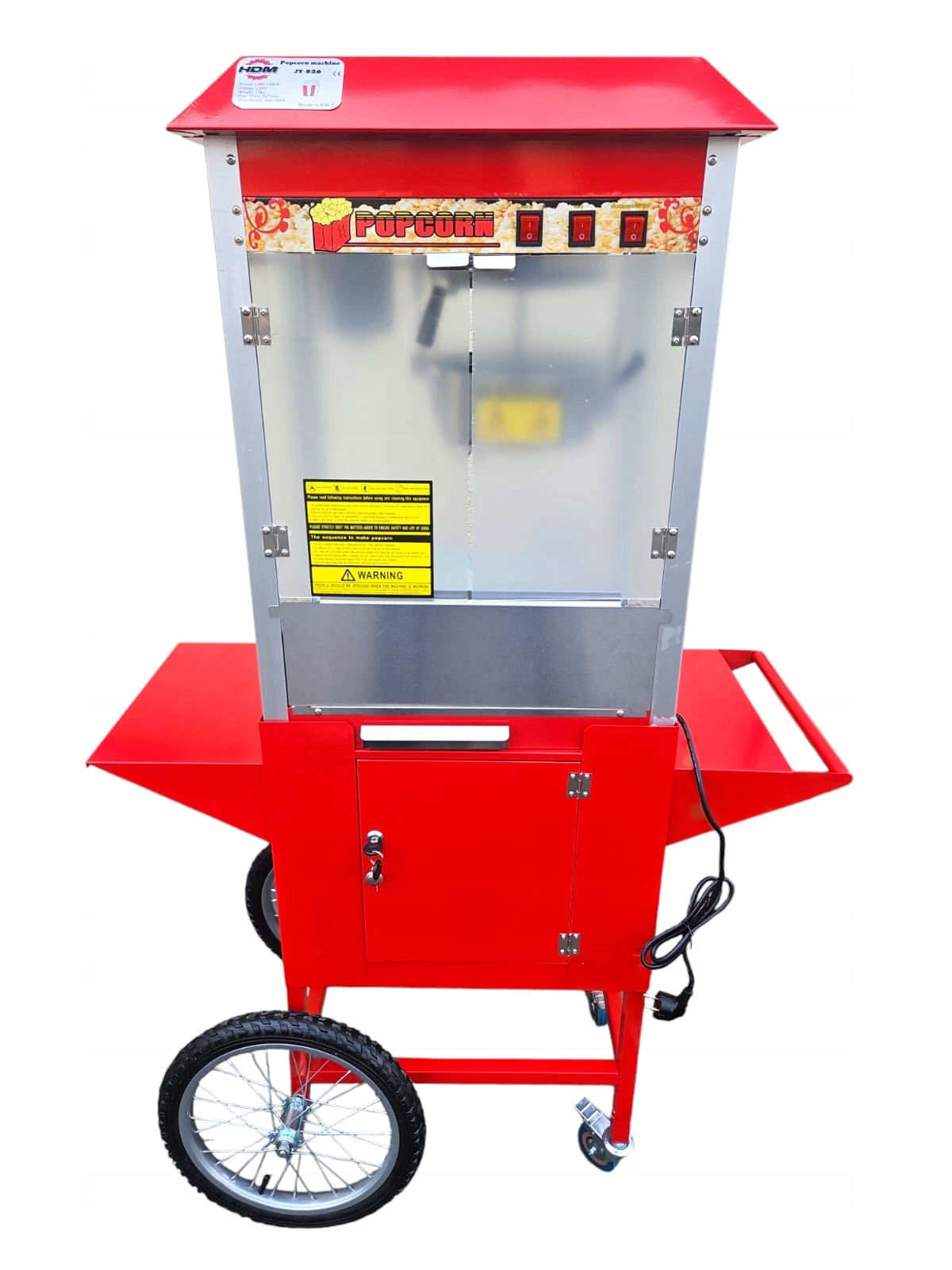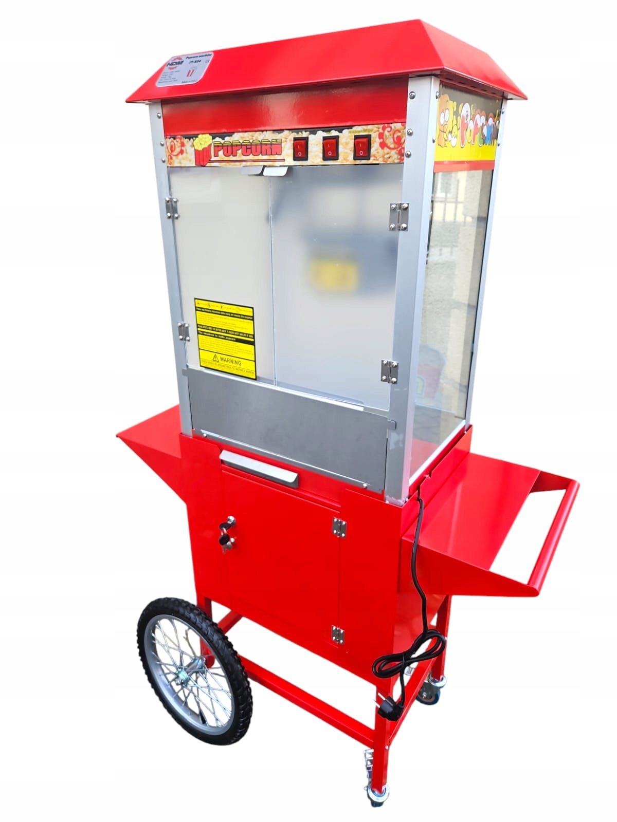 Dzięki maszynie do popcornu Royal Catering wyprodukujesz do 6 kg lub 15 litrów popcornu na godzinę. Zadbają o to mocny silnik o mocy 1400 W, automatyczny termostat i najwyższej klasy element grzejny, który szybko osiągnie temperaturę roboczą. Pierwszą porcję przekąski podasz już po 2 minutach od uruchomienia urządzenia do popcornu. Po wysypaniu kukurydzy z garnka pozostanie ona świeża i chrupiąca przez długi czas dzięki funkcji utrzymywania ciepła. Za sprawą zintegrowanego oświetlenia i jasnoczerwonej obudowy zaprezentujesz swój produkt w efektowny i atrakcyjny sposób.