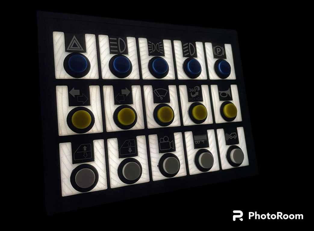 Unikalny PODŚWIETLANY Button Box do symulatorów gier m.in Euro Truck Simulator, American Truck Simulator, Faming Simulator, Assetto Corsa, Snow Runner oraz do wielu innych gier