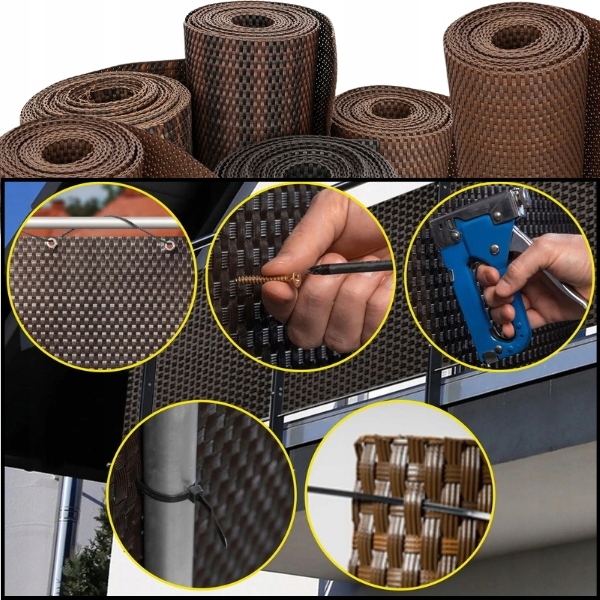 Maty wykonane z plecionych pasków technorattanu to nowoczesne i trwałe rozwiązanie, idealne do zastosowania na balkonach, tarasach czy ogrodzeniach.