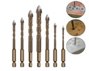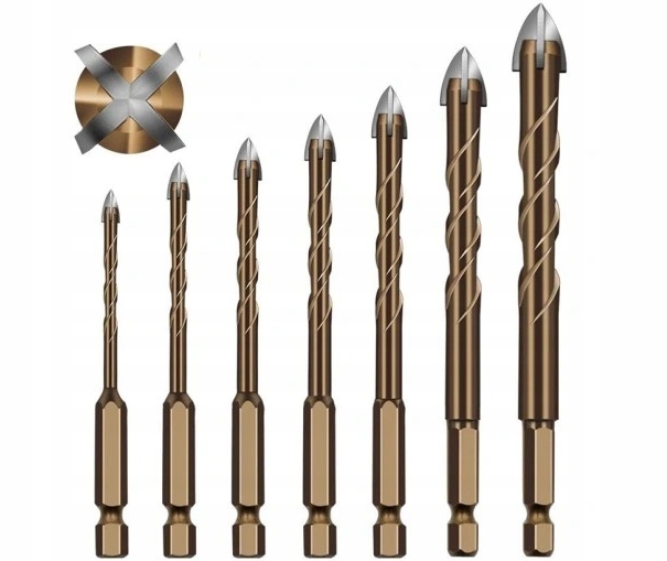 Wiertła posiadają uchwyt HEX 1/4", a ich materiałem jest węglik wolframu. Powierzchnia i krawędzie wierteł są szlifowane, a nacięcie poprzeczne umożliwia rozpoczęcie wiercenia bez punktowania.