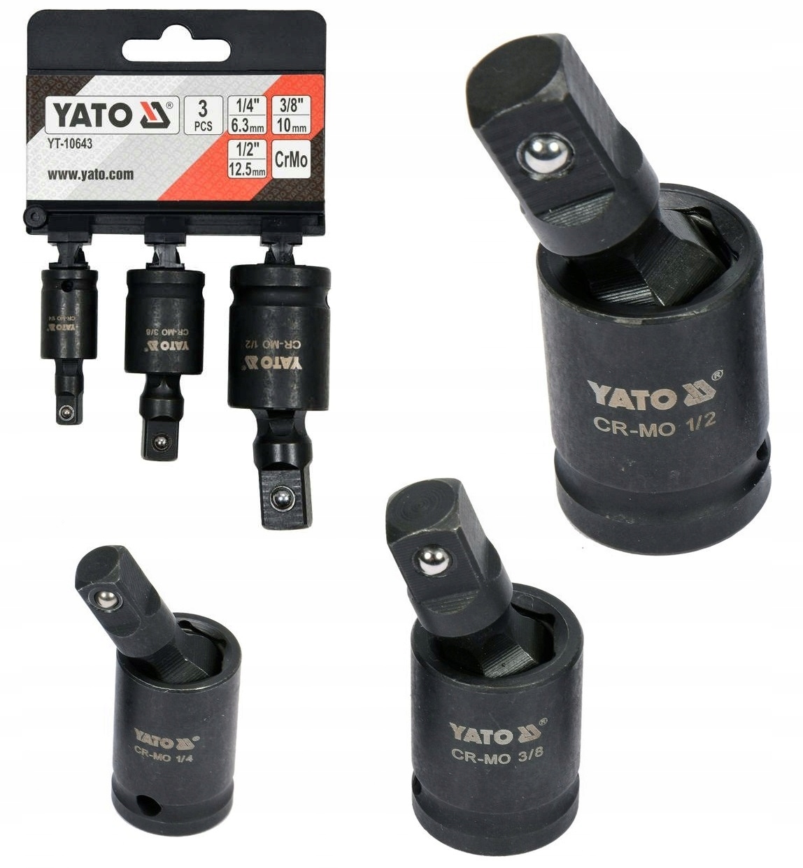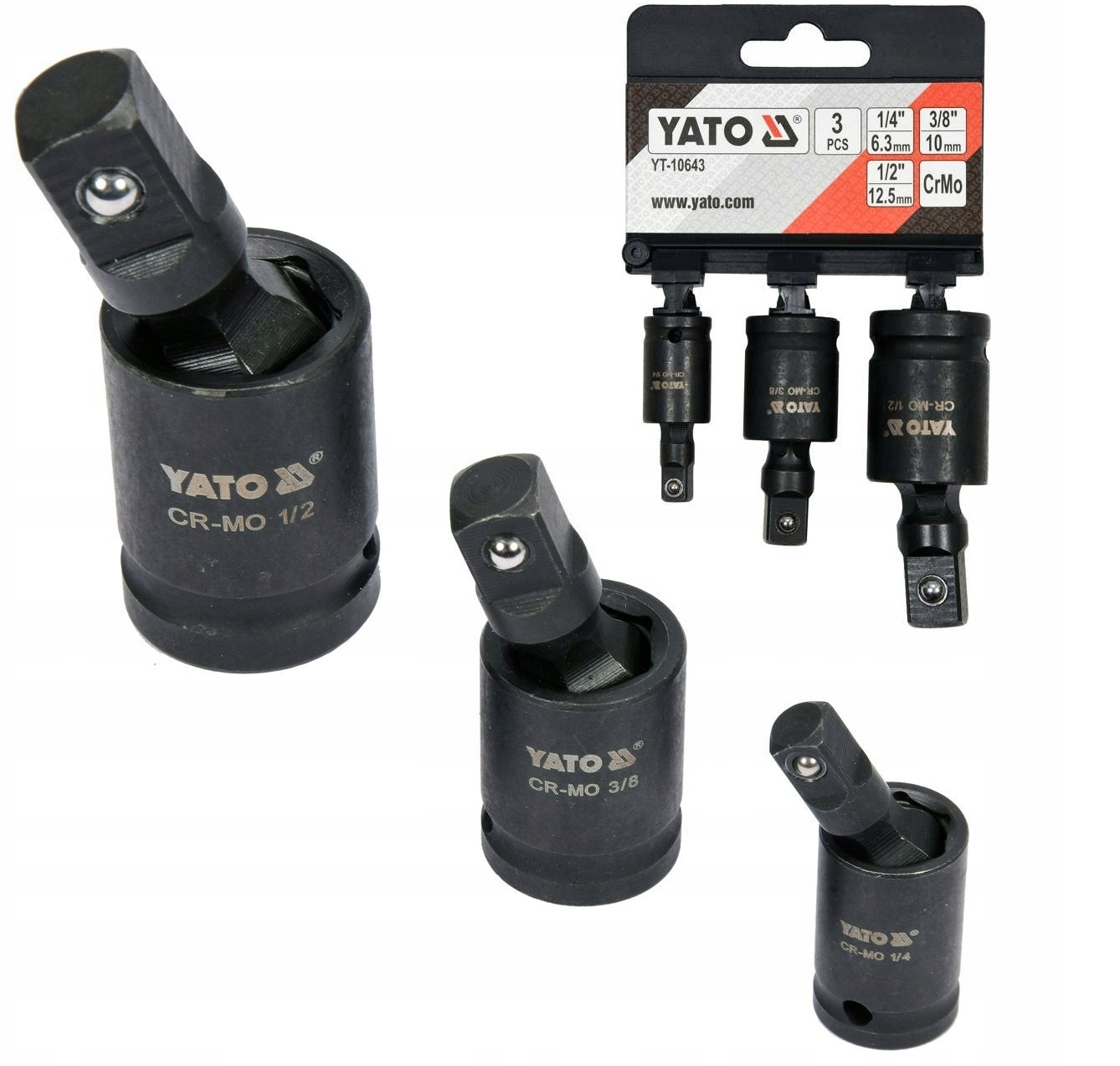 ZESTAW PRZEGUBÓW UDAROWYCH 1/4" 3/8" 1/2 YT-10643