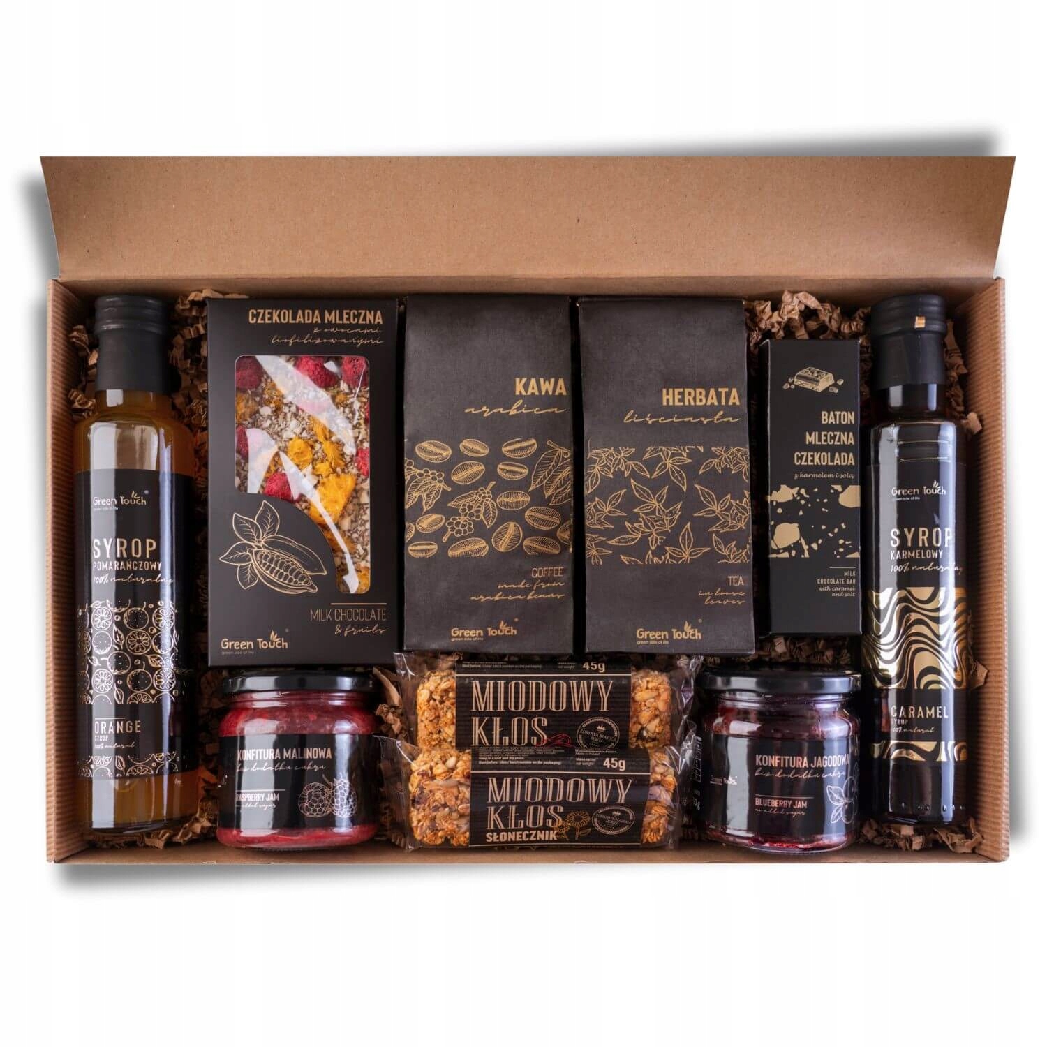 Starannie skomponowany zestaw prezentowy, który idealnie sprawdzi się jako elegancki upominek zarówno prywatny, jak i biznesowy. Wyselekcjonowane produkty zachwycą każdego miłośnika dobrej kawy, aromatycznej herbaty oraz wyjątkowych, naturalnych słodkości.