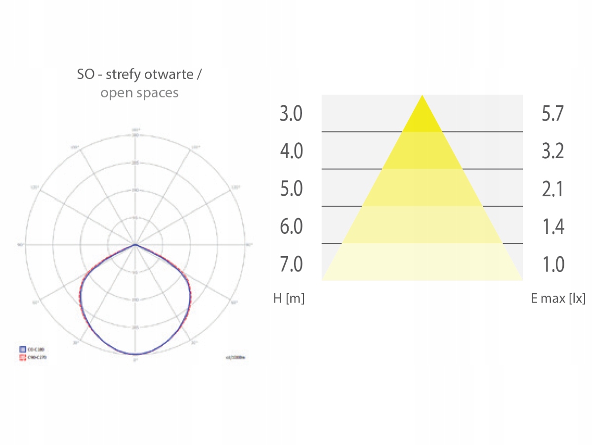 Model wyposażony jest w optykę do oświetlania stref otwartych (SO) o mocy 2W i strumieniu świetlnym 200 lm. Obudowa została wykonana z wytrzymałego poliwęglanu i posiada stopień ochrony IP20. Oczko przeznaczone jest do montażu w sufitach podwieszanych.