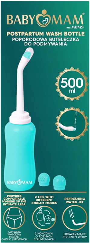Butelka do podmywania Babymam z nowej linii produktów Babymam FOR MUMS, zastępuje tradycyjny bidet w wielu sytuacjach. Odświeżający strumień wody do delikatnego mycia okolic intymnych podczas korzystania z toalety. Świetnie sprawdza się jako dodatkowe wsparcie w utrzymaniu codziennej higieny, w ciąży i po porodzie, podczas miesiączki czy wyjazdów. Regularne stosowanie butelki zmniejsza ryzyko ewentualnych infekcji czy dodatkowych podrażnień.